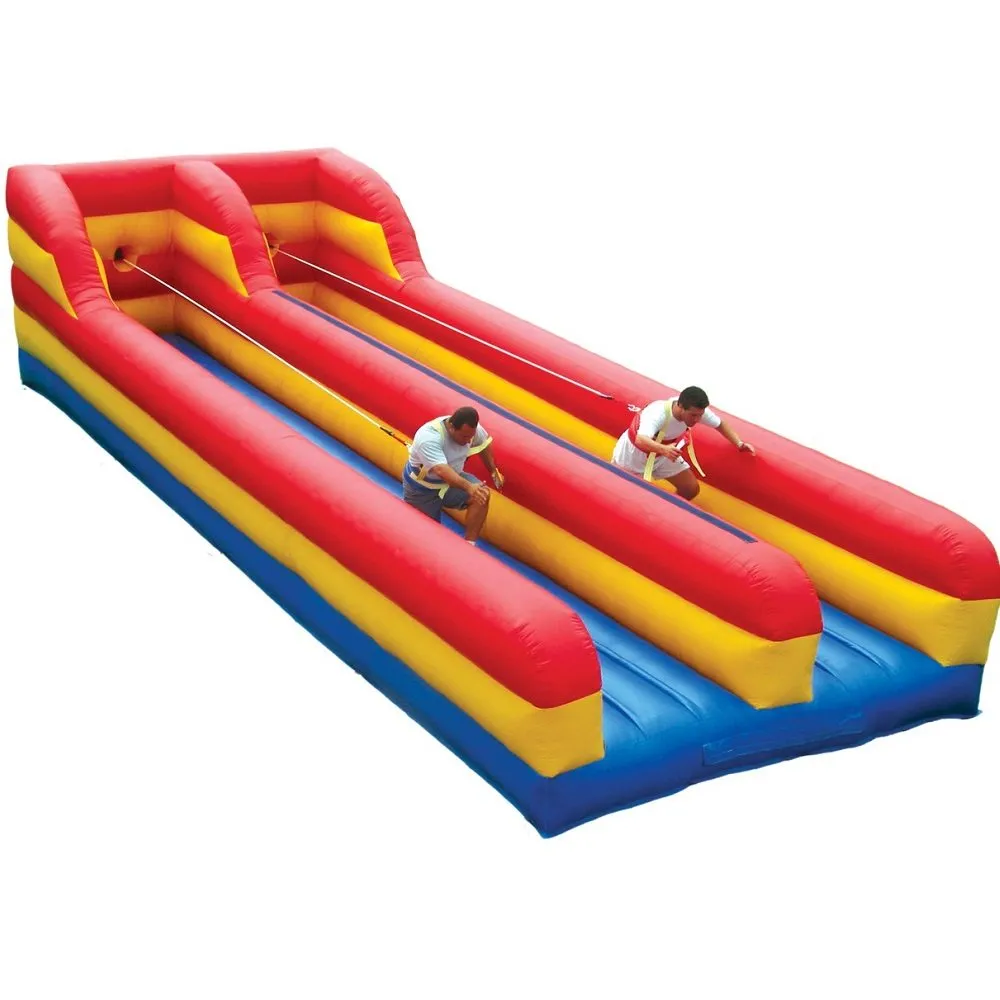 Dans le jeu gonflable en location « Elastarun », deux joueurs s’affrontent simultanément. Le but du jeu est de placer le témoin le plus loin possible sur la berne centrale tout en étant attaché par un élastique qui ralentira de plus en plus votre course. La fin de l’animation risque d’en étonner plus d’un avec le retour rapide en l’endroit de départ grâce à la tension de l’élastique. L’élastarun est livré avec moteur, housse de transport et rallonges électriques si nécessaire. La location de l’élastarun peut-être couplée avec d’autres jeux gonflables, comme des châteaux gonflables que nous proposons également en location afin d’assurer l’animation parfaite de votre événement.