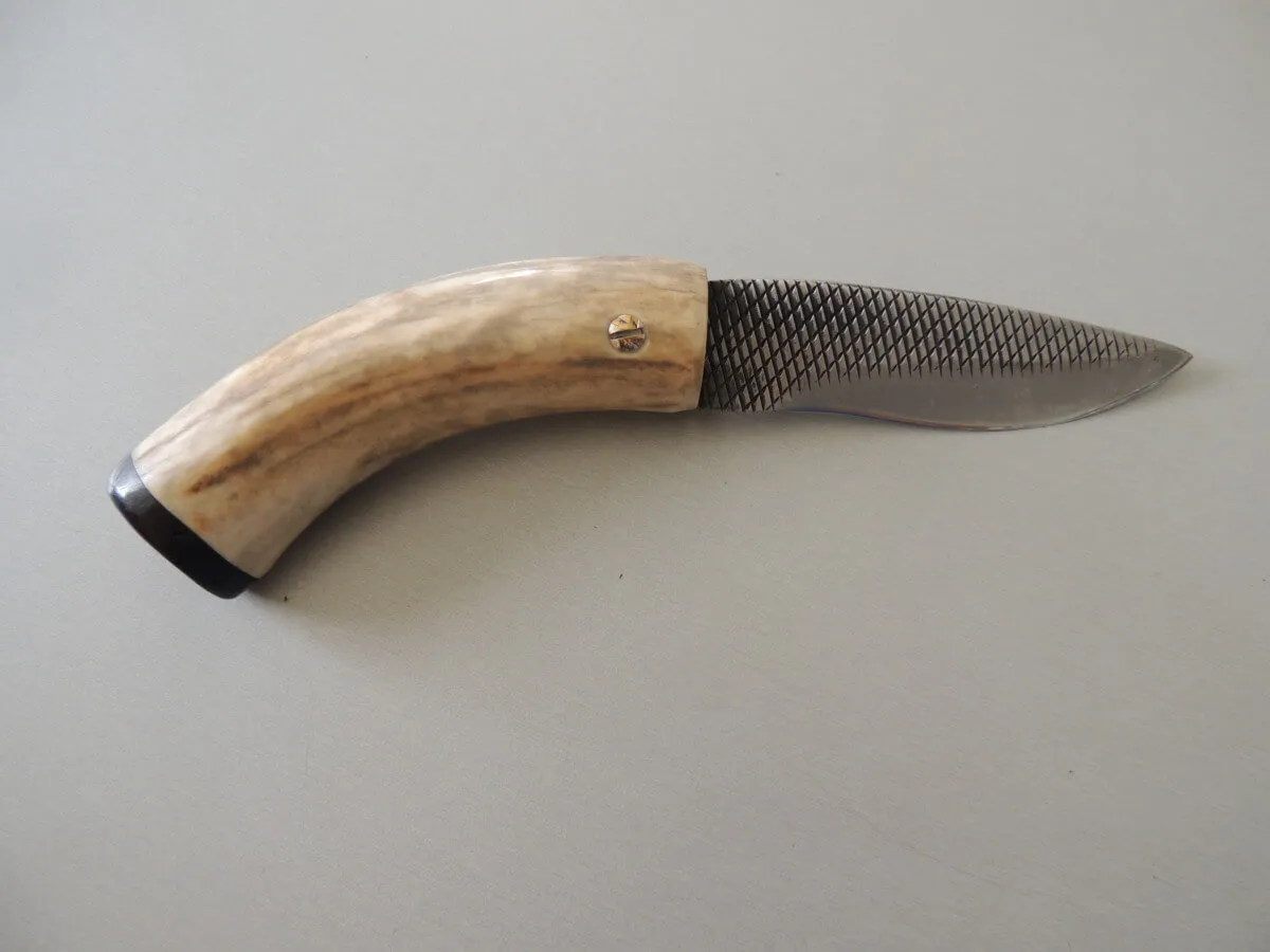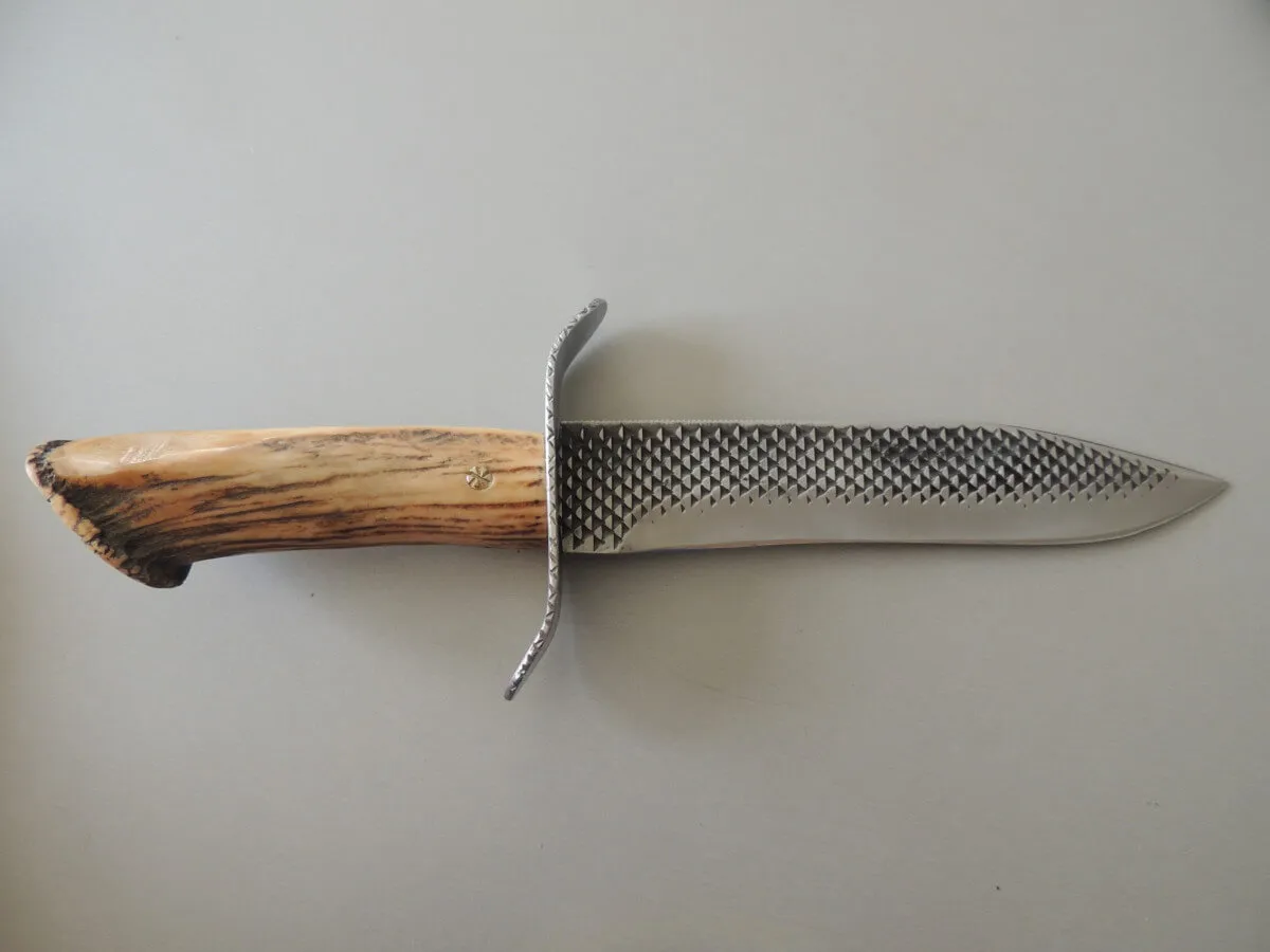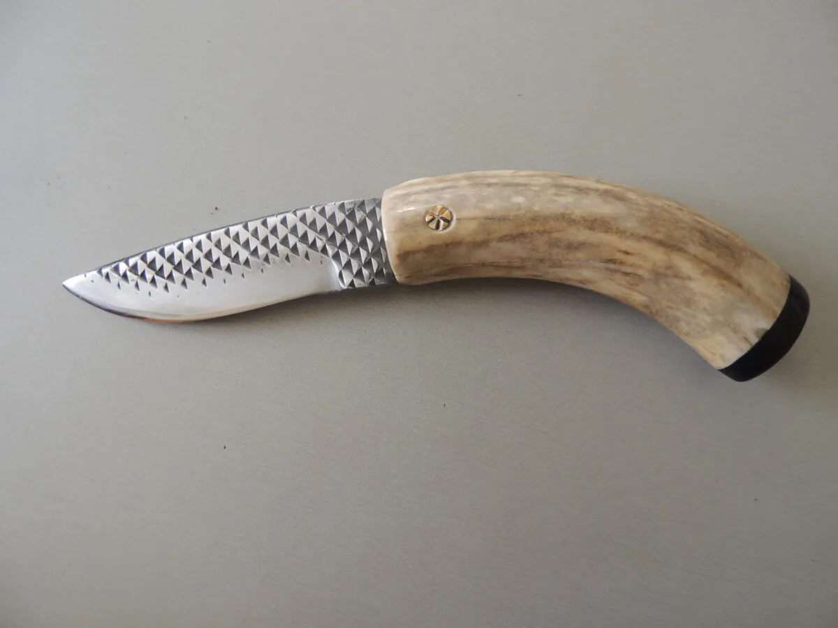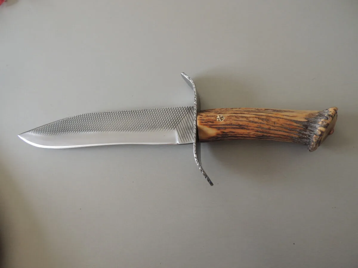 Couteau par Marcel Lambotte, lame carbone, ensemble en bois de cerf comprenant une dague et un poignard.
