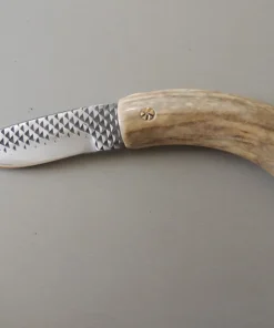 Poignard bois de cerf avec culot en bois ébène, lame forgée main en acier carbone 23 cm dont 11 cm de lame.