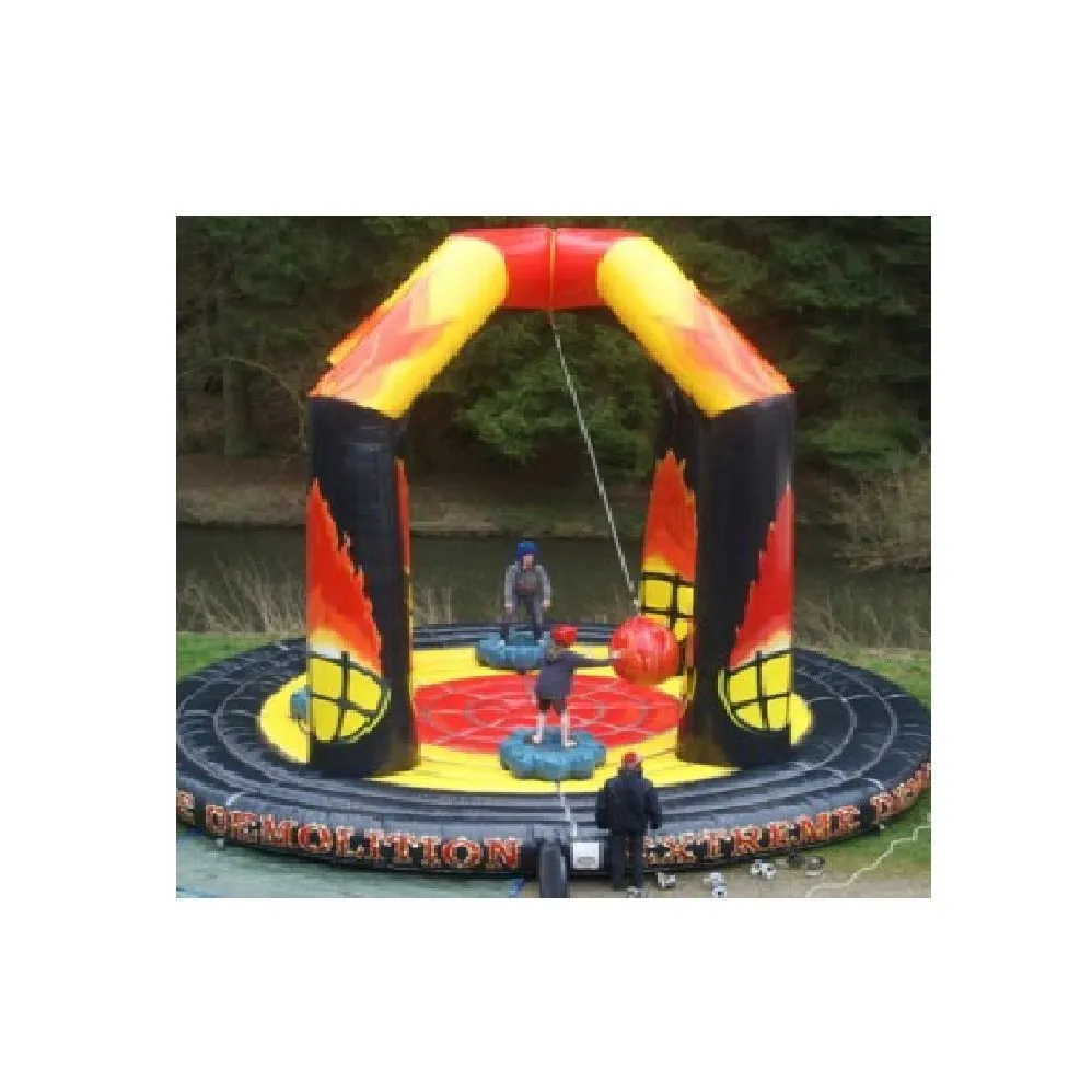 Extreme démolition est un jeu gonflable géant. Quatre joueurs se tiennent sur une structure en mousse plus ou moins étroite et essayent de faire tomber leurs adversaires à l’aide d’une énorme boule de démolition accrochée au centre de la structure gonflable.