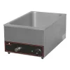 Le corps de ce four à convection en location est en acier inoxydable, avec éclairage intérieur, minuterie, voyants lumineux, thermostat, thermostat de sécurité, 4 grilles GN1/1. La porte du four en location est composée d’une vitre double. Le four utiliser deux résistances et deux ventilateurs pour la circulation de l’air. L’intérieur du four en location est en surface émaillée.