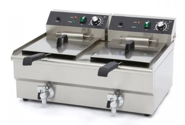 Cette friteuse proffessionnelle disponible à la location possède 2 cuves de 8 litres.