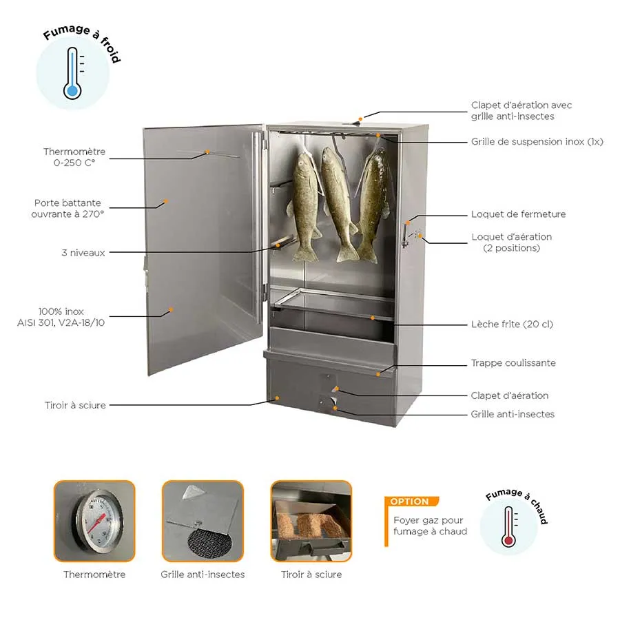 Catégories : Fumoir, Fumoir à froid, Fumoir à poisson et viande, Fumoir Politec