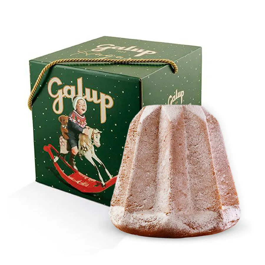 Le Pandoro est, avec le Panettone, un gâteau italien classique pour célébrer Noël. Le Pandoro Galup est fabriqué à la main selon des recettes traditionnelles et avec des ingrédients frais et authentiques : beurre, œufs frais de poules élevées en plein air et de la levure naturelle. Doux et parfumé, il séduira petits et grands et accompagne parfaitement les fêtes de fin d’année !
