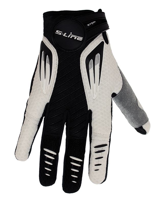 Gants Motocross Cross pilot S-Line. Noir et blanc, parfait pour la pratique du motocross. Non homologué CE.