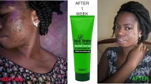Le gommage de visage tea tree est un gommage utiliser pour éliminer les impuretés acné tâches boutons du visage , utiliser une lingette humide pour nettoyer le visage ensuite appliquer le gommage sur le visage en fesant une massage sans toucher les yeux après 20 min rincer le visage avec de l’eau tiède.