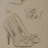 Dessin de présentation salon couturière. petit format collé sur plaquette de médium idéale décoration.
