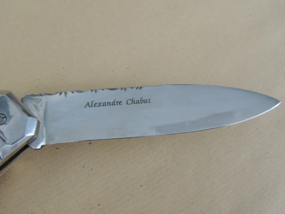 Personnalisation sur la lame du couteaux de votre choix. Nom et Prénom