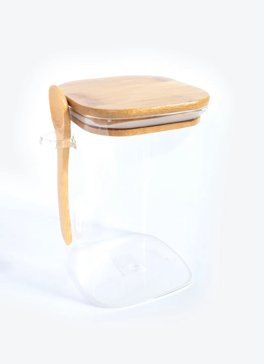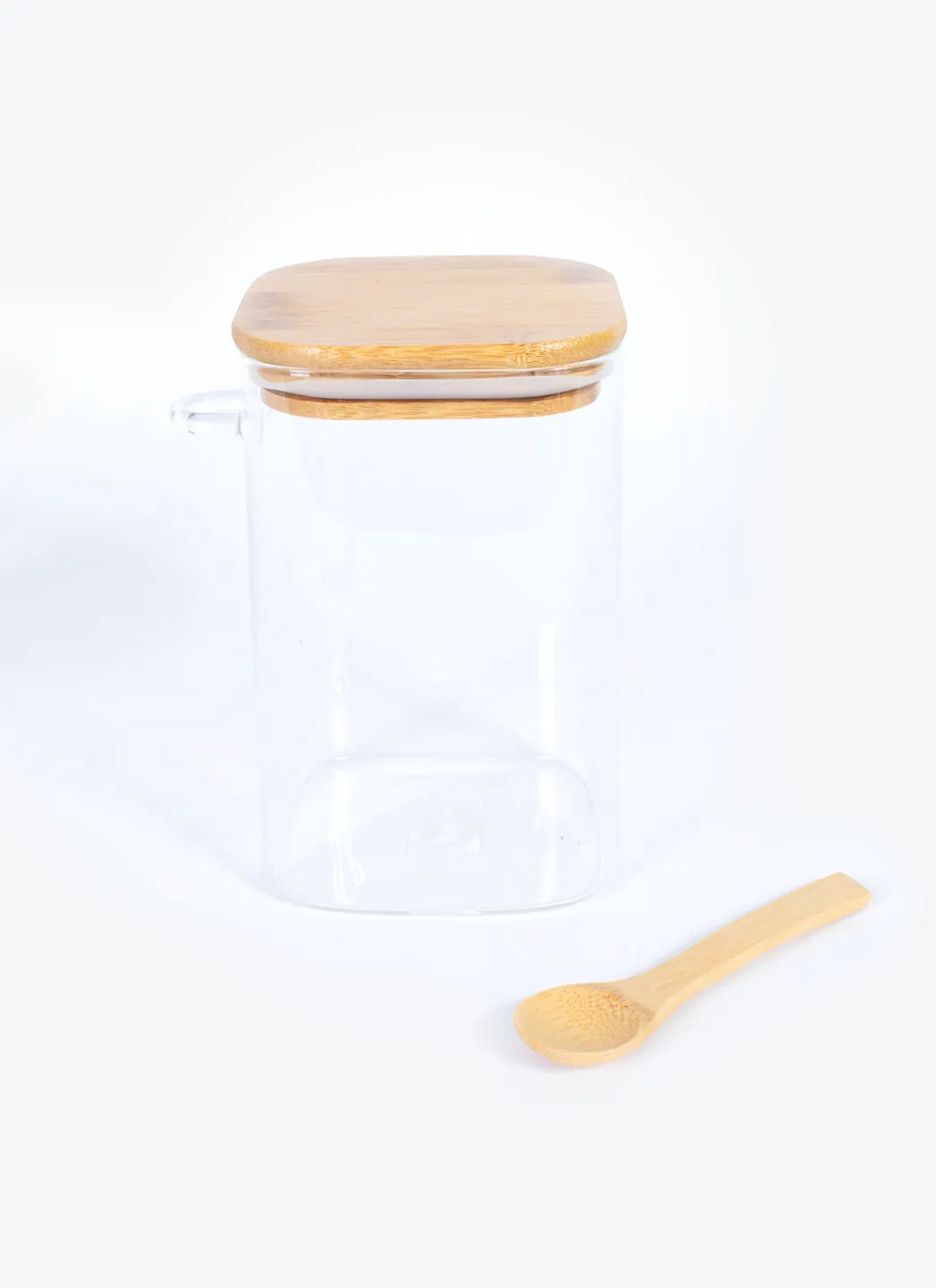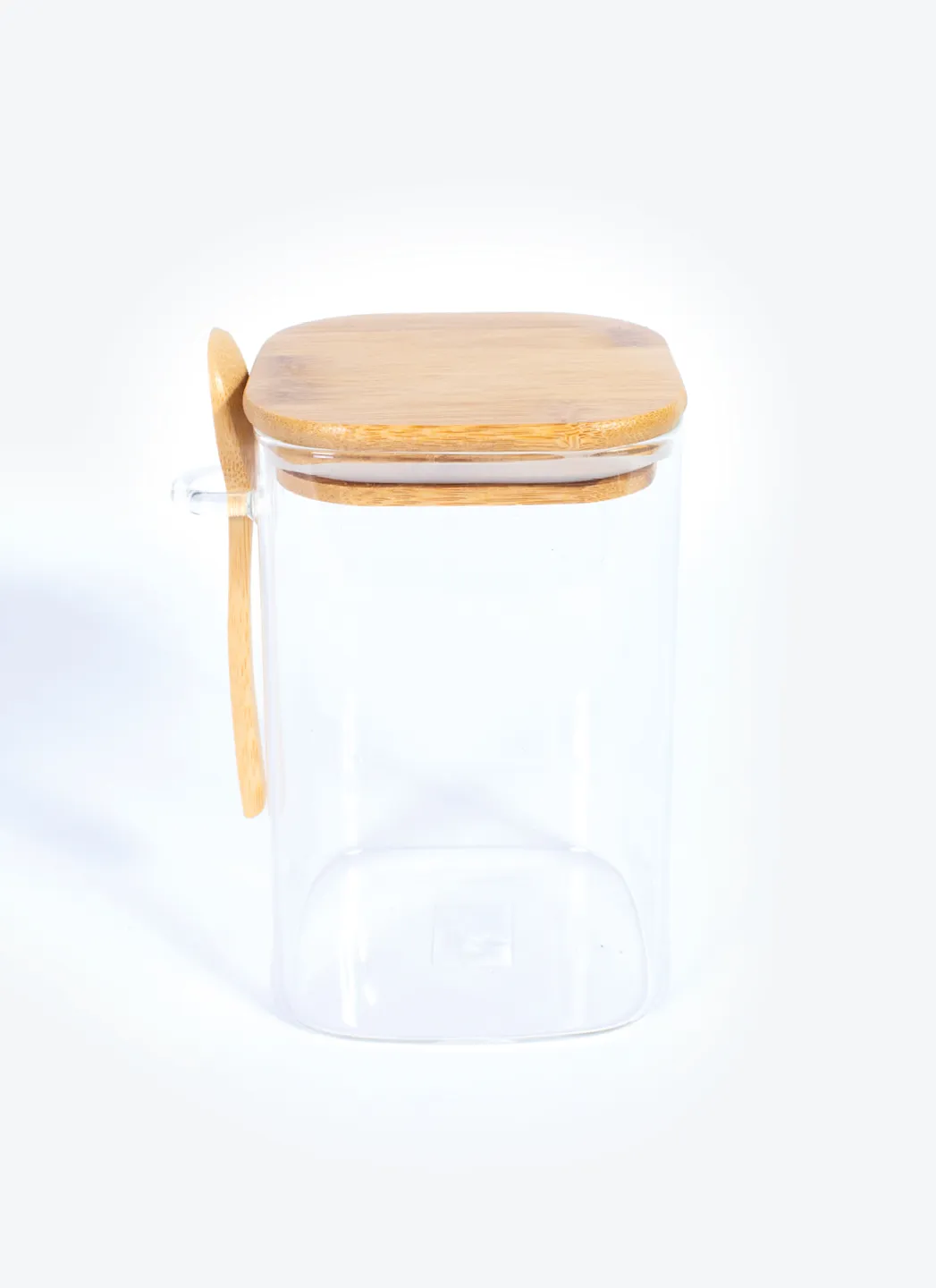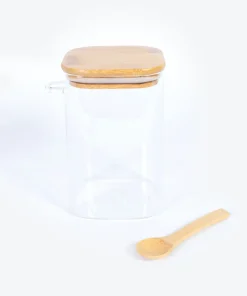 Boîte à café en verre avec couvercle en bois avec joint en silicone. Comprend une cuillère en bois qui se fixe sur le côté pour garantir des dosages toujours parfaits. Convient à un paquet de café normal de 500 g.