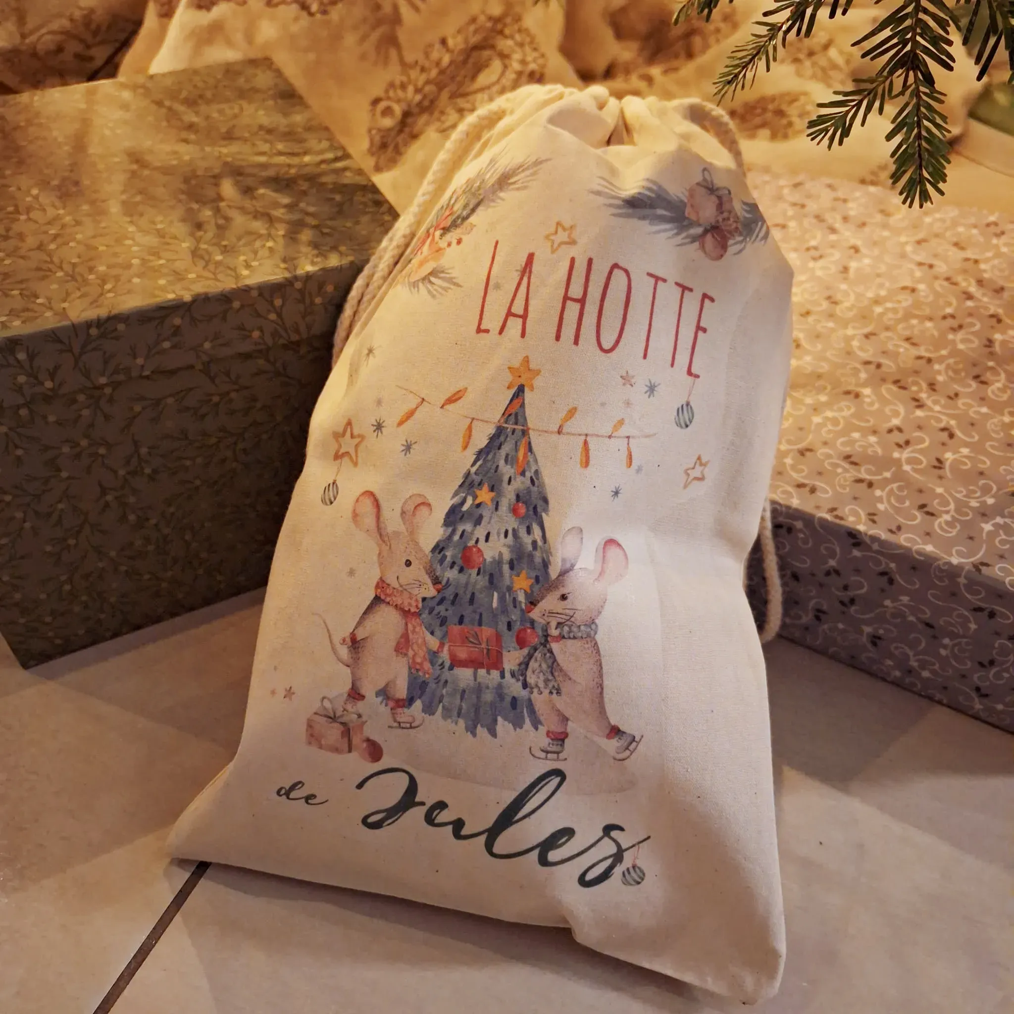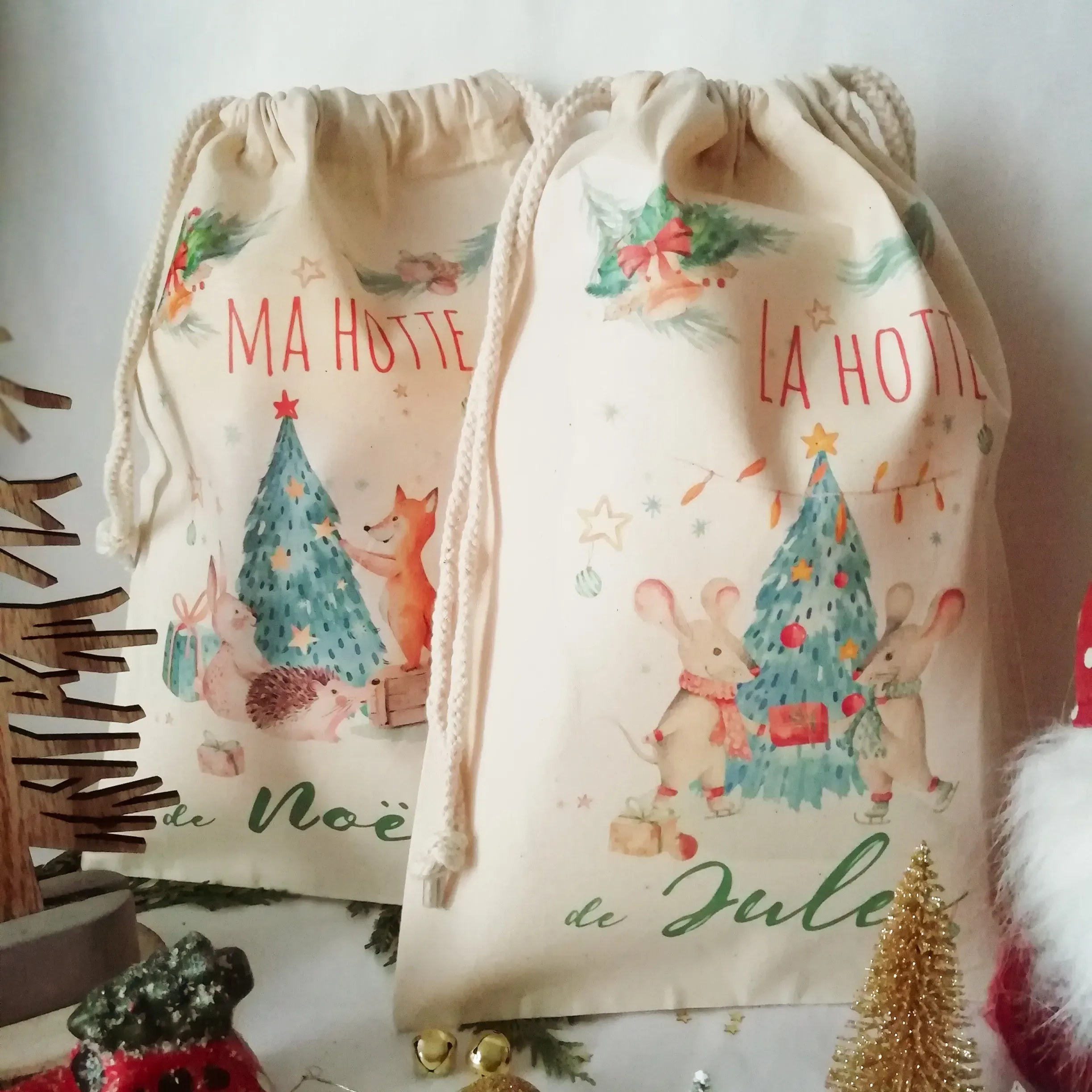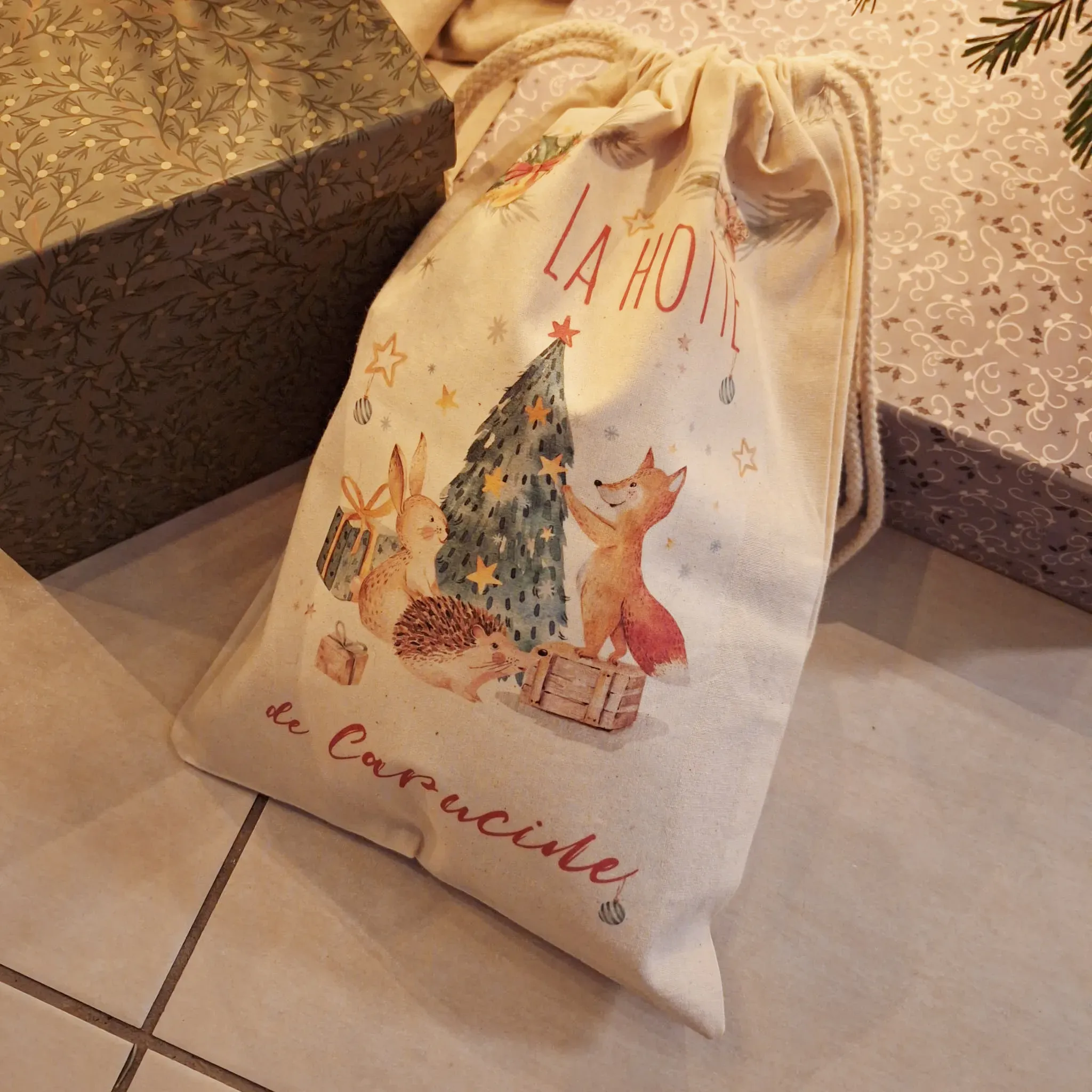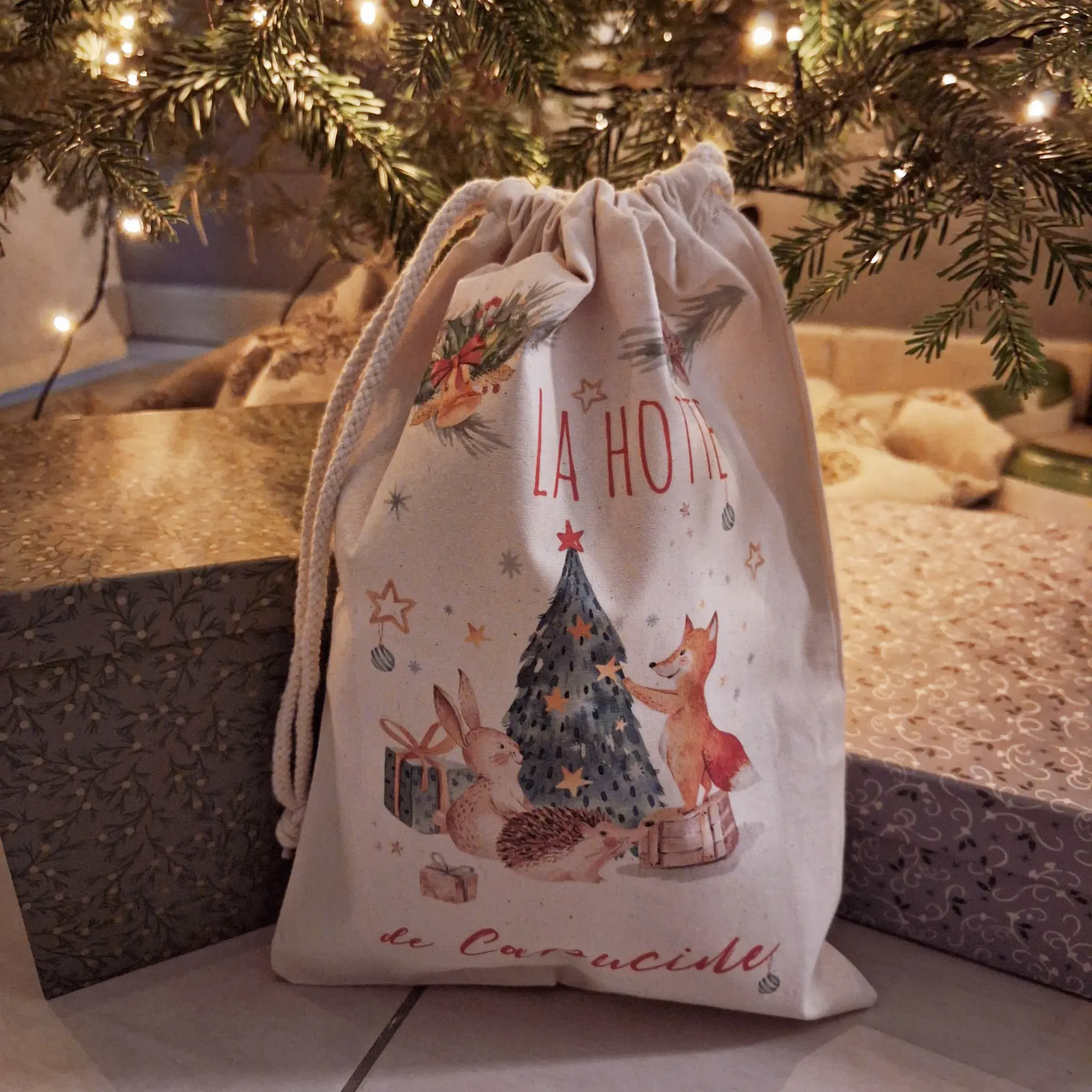 Joli pochon en coton pour les fêtes de Noël.