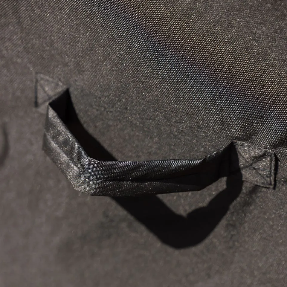 Innovante, elle est dotée du système innovant pop-up. Il s’agit d’un cube à positionner sur la surface de travail du meuble. Ce cube maintient la housse élevée en toute circonstance. Résultat : en cas de pluie, celle-ci ruisselle le long de la housse et empêche la formation de flaque.