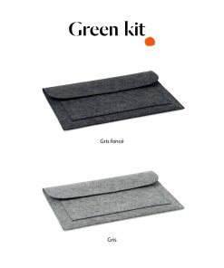 Housse PC portable en RPET. Dimensions : 37 x 26 cm. Poids : 120 g. Personnalisation : sérigraphie (1-4 couleurs), transfert numérique (quadri). Zone de marquage : 250 x 90 mm. Matière : PET recyclé. Couleur : gris foncé, gris. Origine : Hors-Europe.
