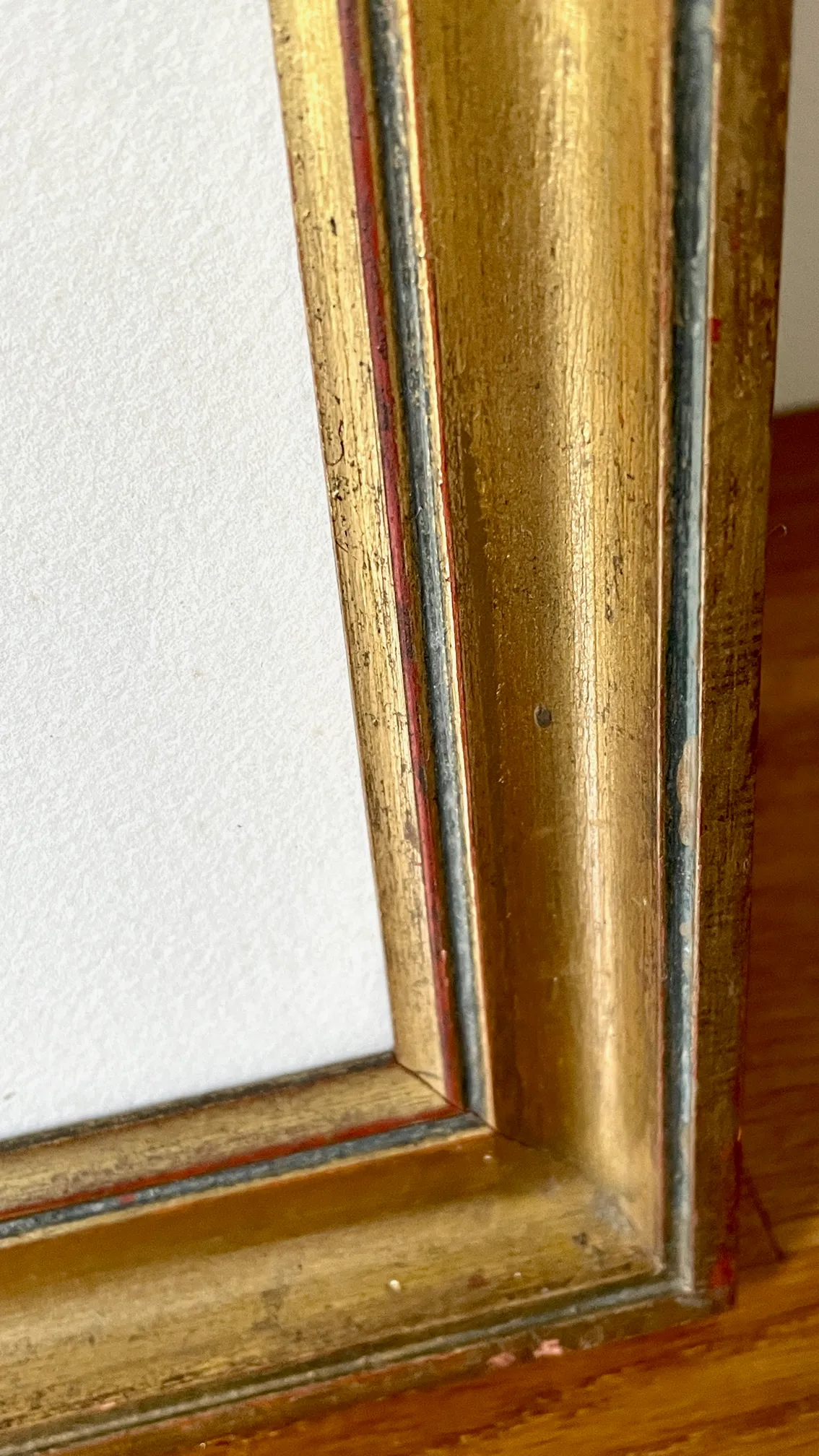 Très bon état, voire impeccable. Encadrement professionnel neuf, Cadre ancien or bois doré et Verre.