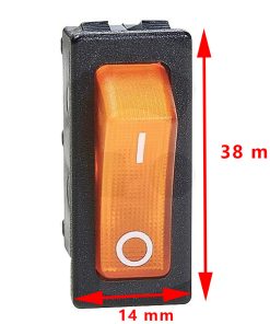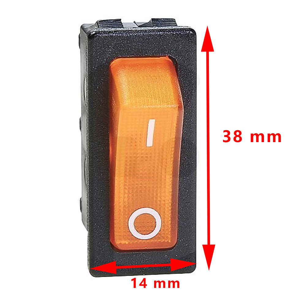 Bouton marche/arret de couleur orange et lumineux comportant 3 contacts 14 x 38 x 33 mm