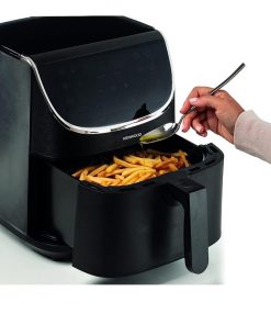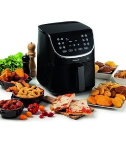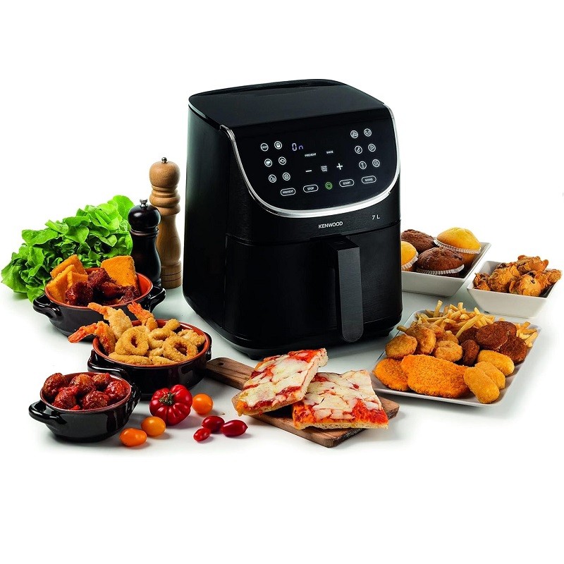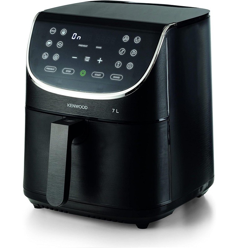 La friteuse à air Kenwood 7L offre plus d’espace pour cuisiner. Dotée d’un panier spacieux de 7 litres, elle vous permet de mettre vos repas sur la table en un temps record. Profitez de la fonction Max Crisp unique et innovante qui réduit le temps de cuisson et produit des aliments chauds, super croustillants à l’extérieur et tendres à l’intérieur. Avec sa grande capacité de 7 litres, elle est idéale pour préparer de grands repas frits pour toute la famille. La fonction « SHAKE » vous rappelle quand remuer ou secouer les aliments pendant la cuisson. Elle dispose également d’un mode déshydratation pour sécher les fruits, la viande et les légumes jusqu’à 24 heures. Et avec seulement une cuillère à soupe d’huile nécessaire pour faire frire les frites, elle offre 80% de matières grasses en moins qu’une friteuse classique. Avec ses 12 programmes préréglés et son écran tactile numérique, elle facilite la préparation de délicieuses recettes tout en permettant une programmation ajustable de la température et du temps. De plus, le nettoyage est un jeu d’enfant grâce au revêtement antiadhésif du panier. Obtenez les résultats les plus croustillants en quelques minutes seulement grâce au plateau et à la température maximale (MAX CRISP).