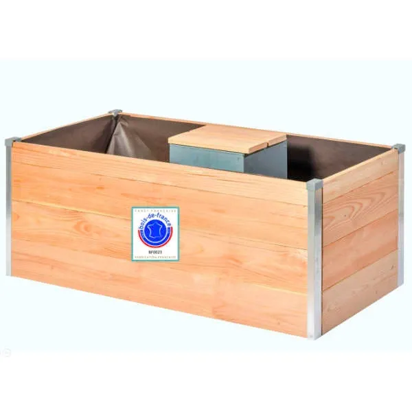- Dimensions de la partie potager : 115 cm x 60 cm x 48 cm