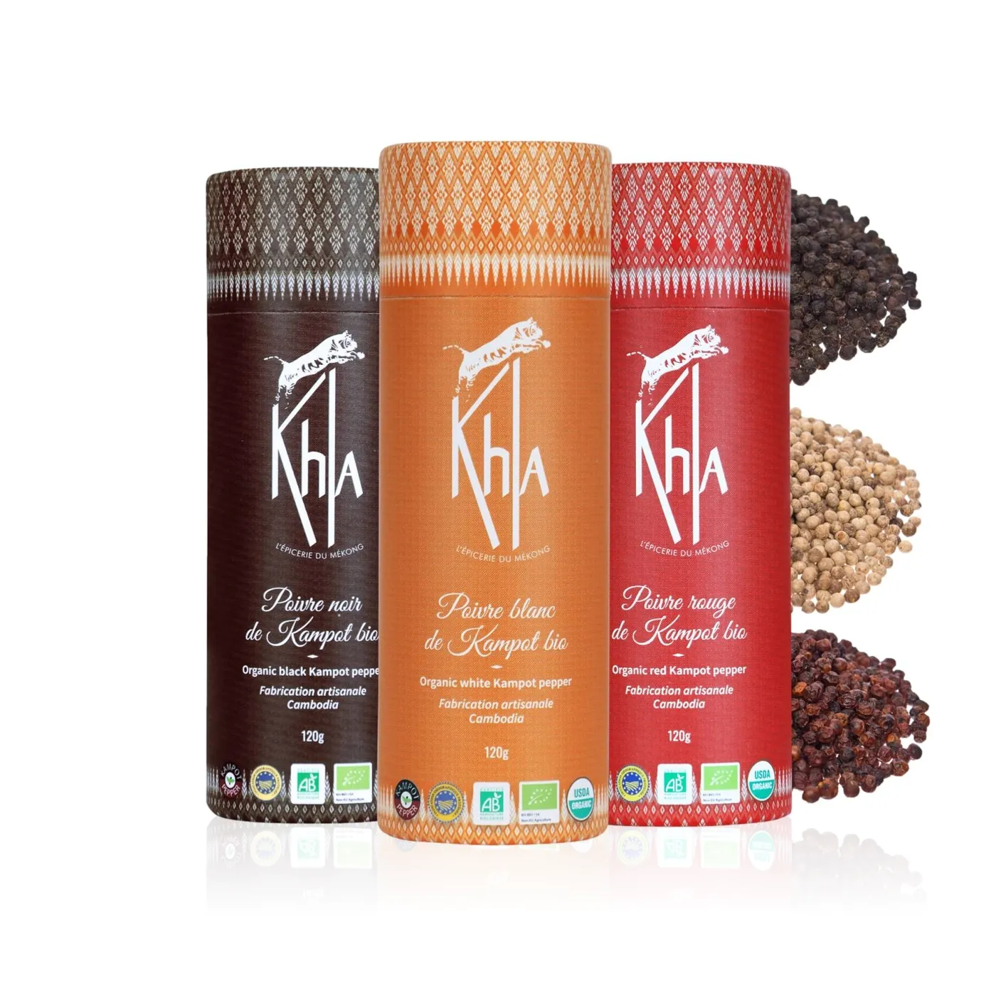 Khla, marque française d’épicerie fine, valorise le commerce équitable et les produits certifiés, travaillant en partenariat direct avec des producteurs locaux de Kampot.[/vc_column_text][/vc_column][/vc_row]