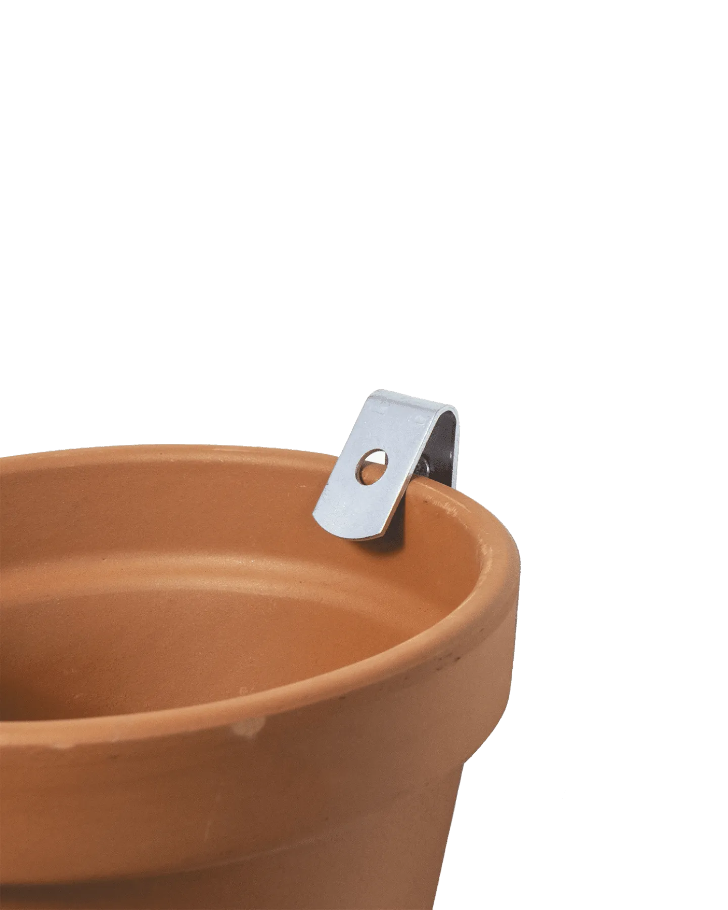 Les Clippy sont réglables pour permettre de fixer des pots de tailles différentes (pots classiques en terre cuite avec un rebord), de diamètre ø 18 à 22 cm, avec un trou de drainage de ø 17 à 22 mm.