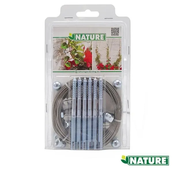 Le câble, entièrement en acier galvanisé, est flexible et solide. Il supporte les plantes même les plus vigoureuses sans casser.
