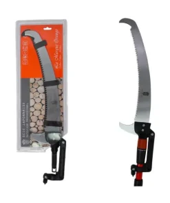 Selon vos besoins de taille, vous pouvez fixer très simplement, au bout de la perche, soit l’échenilloir soit la scie d’élagage présents dans le kit.