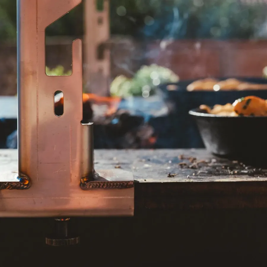 Préparez une variété de plats différents avec ce kit support rôtissoire pour brasero. Le support rôtissoire KIBRULE est une construction idéale pour préparer de grandes pièces de viande ou de volaille. Le kit se compose de deux supports en acier inox qui s’adaptent aux braseros KIBRULE en 80cm. Un montant supérieur en acier inoxydable relie les deux côtés pour les maintenir en place. Adaptée à la plupart des broches disponibles sur le marché, la distance entre les deux montants est d’environ 82 cm pour les braseros en 80 cm. Nous vous conseillons donc d’opter pour une broche avec quelques centimètres en plus, par exemple une de 90 cm et plus pour les planchas de 80cm.