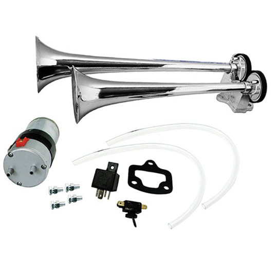 Klaxon chromé 2 trompes 12V avec compresseur.