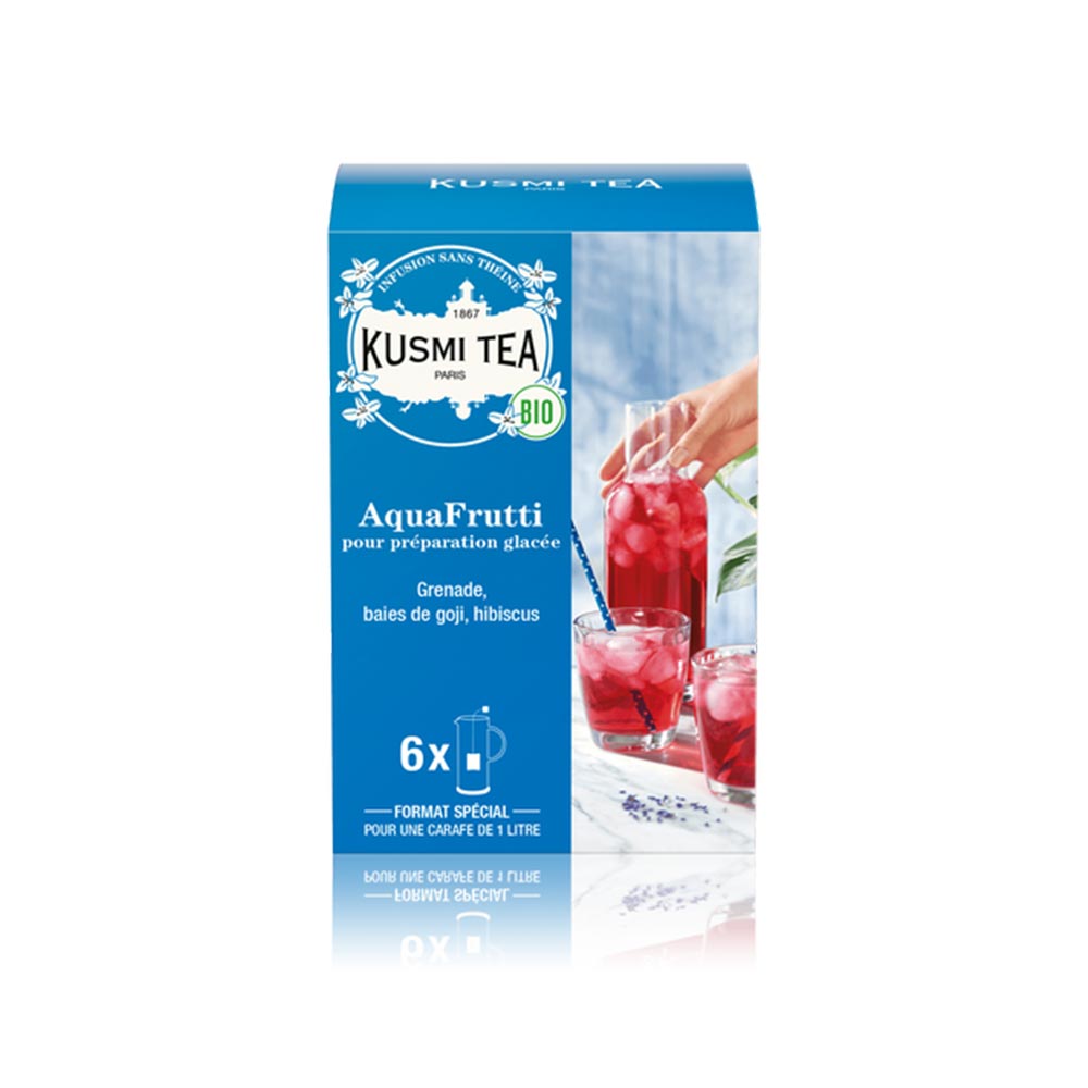 Cette tisane sans théine – délicieuse chaude comme glacée – a même le pouvoir de vous accrocher un sourire aux lèvres. Tout devient possible avec la super-infusion AquaFrutti de Kusmi Tea… Attention, vous allez y prendre goût !