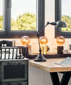 Jolie LAMPE design Space Age en Céramique Cerclée d’Aluminium, une petite Lampe Géométrique qui a du Caractère, on est Fan !