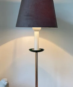 LAMPE Chic Robert de Schuytener ANNEES 70/80, Modèle “Trianon. Une Lampe toute en Hauteur, en métal laqué et doré et Velours beige pour son Abat-jour, une pièce Graphique, Raffinée et de bon goût.