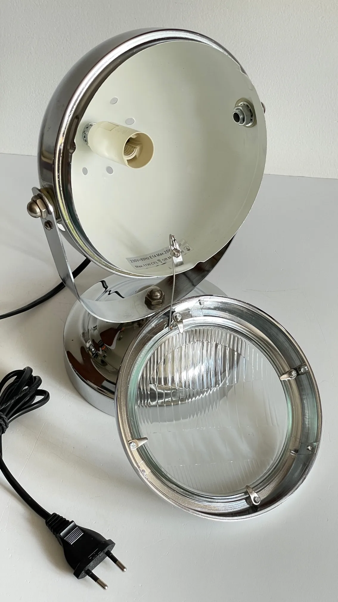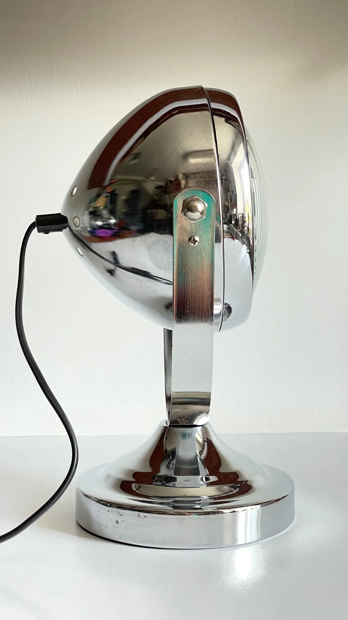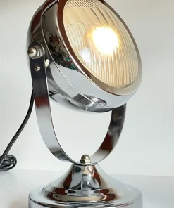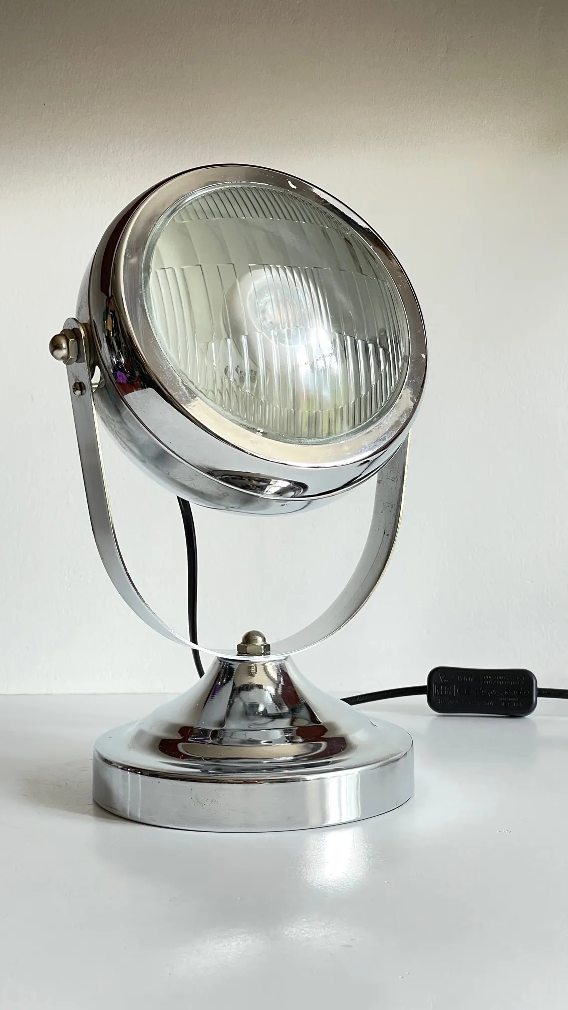 LAMPE Orientable toute en Métal Chromé en Forme de Phare de Voiture, 1 pièce Chic et design des Années 90 – 2000 à placer et déplacer sans se lasser !