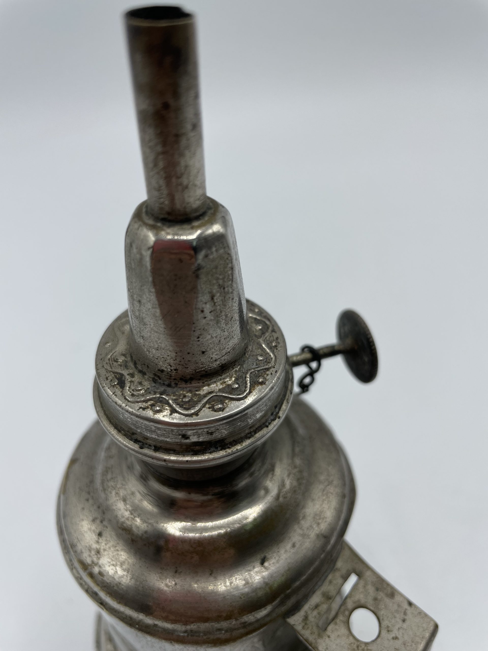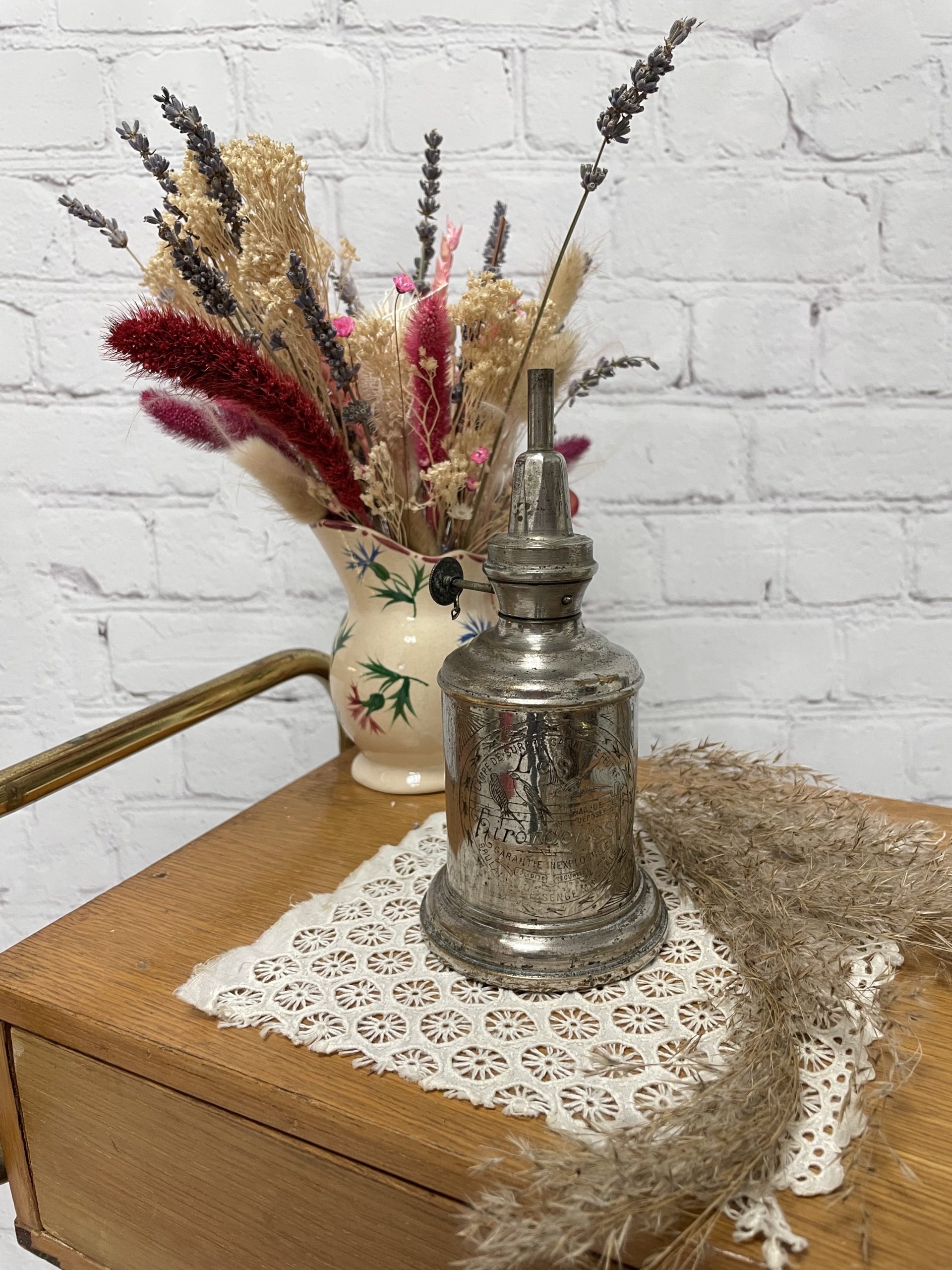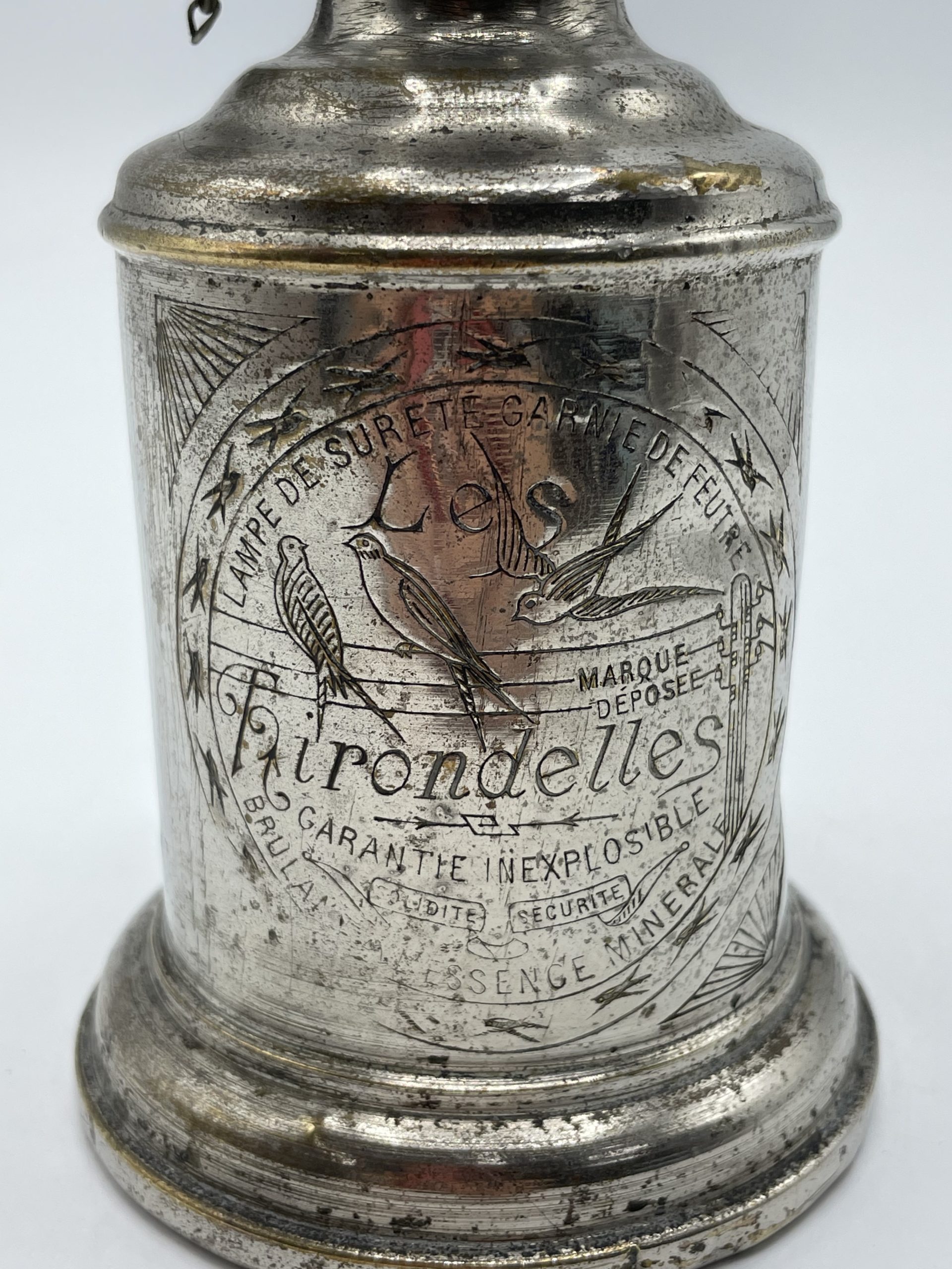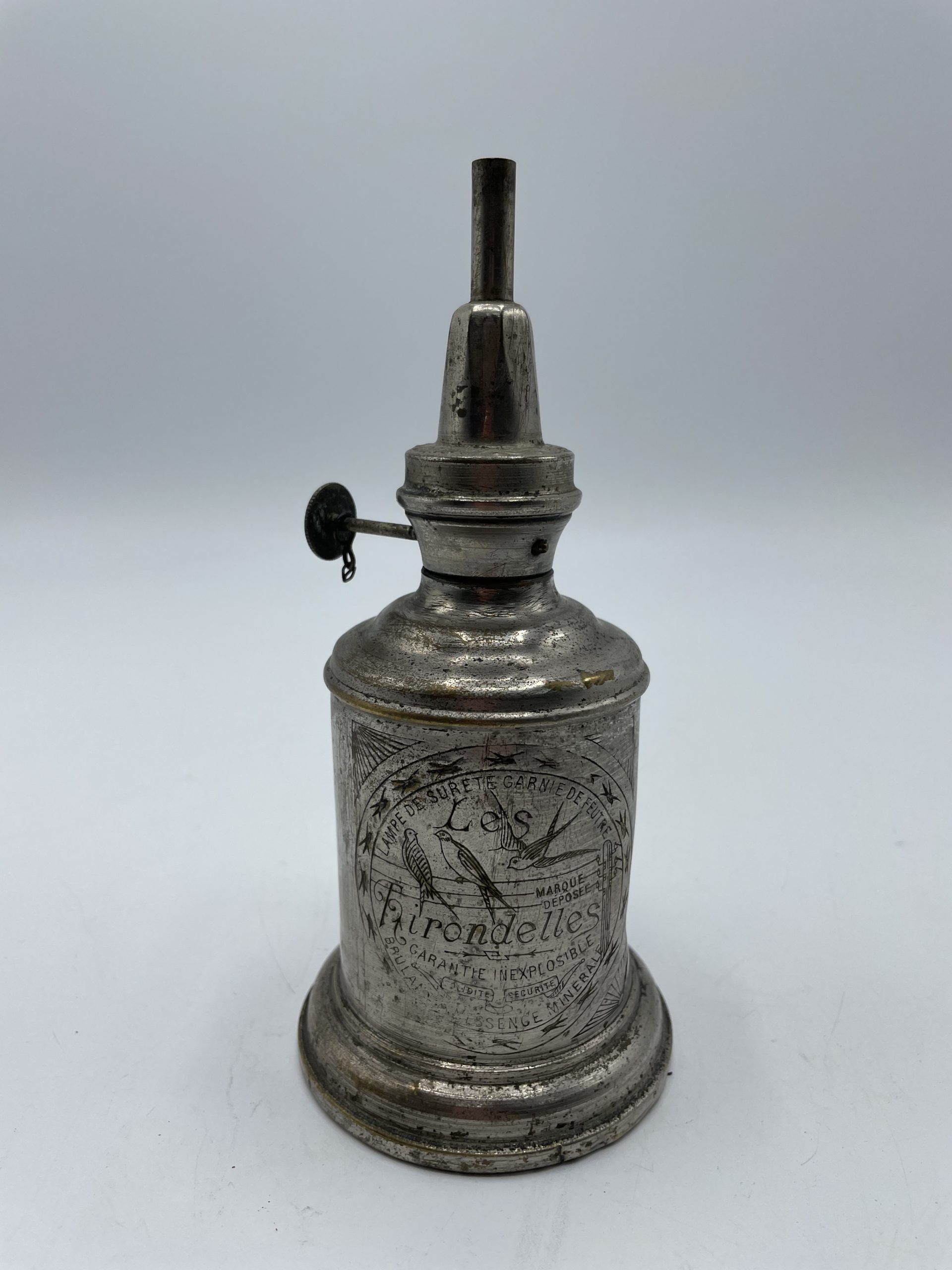 Amoureux d’objets vintages, vous allez craquer pour cette sublime lampe pigeon vintage ! En laiton, il s’agit d’un modèle de la marque déposée française Hirondelles. La lampe est garnie de feutre ce qui assure une sécurité d’usage. A l’essence minérale, la lampe devait être rechargée pour assurer une combustion de la mèche. Pratique, elle possède une petite poignée qui permet de la tenir sans se brûler. Vintage, des traces d’usure et de coups sont à prévoir (cf photos) jolies marques du temps passé. On l’adore !