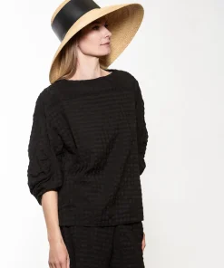Superbe blouse à manches bouffantes mi-longues. Fabriquée dans un tissu avec une texture intéressante. Elle peut être portée en soirée ou en tenue de tous les jours.