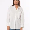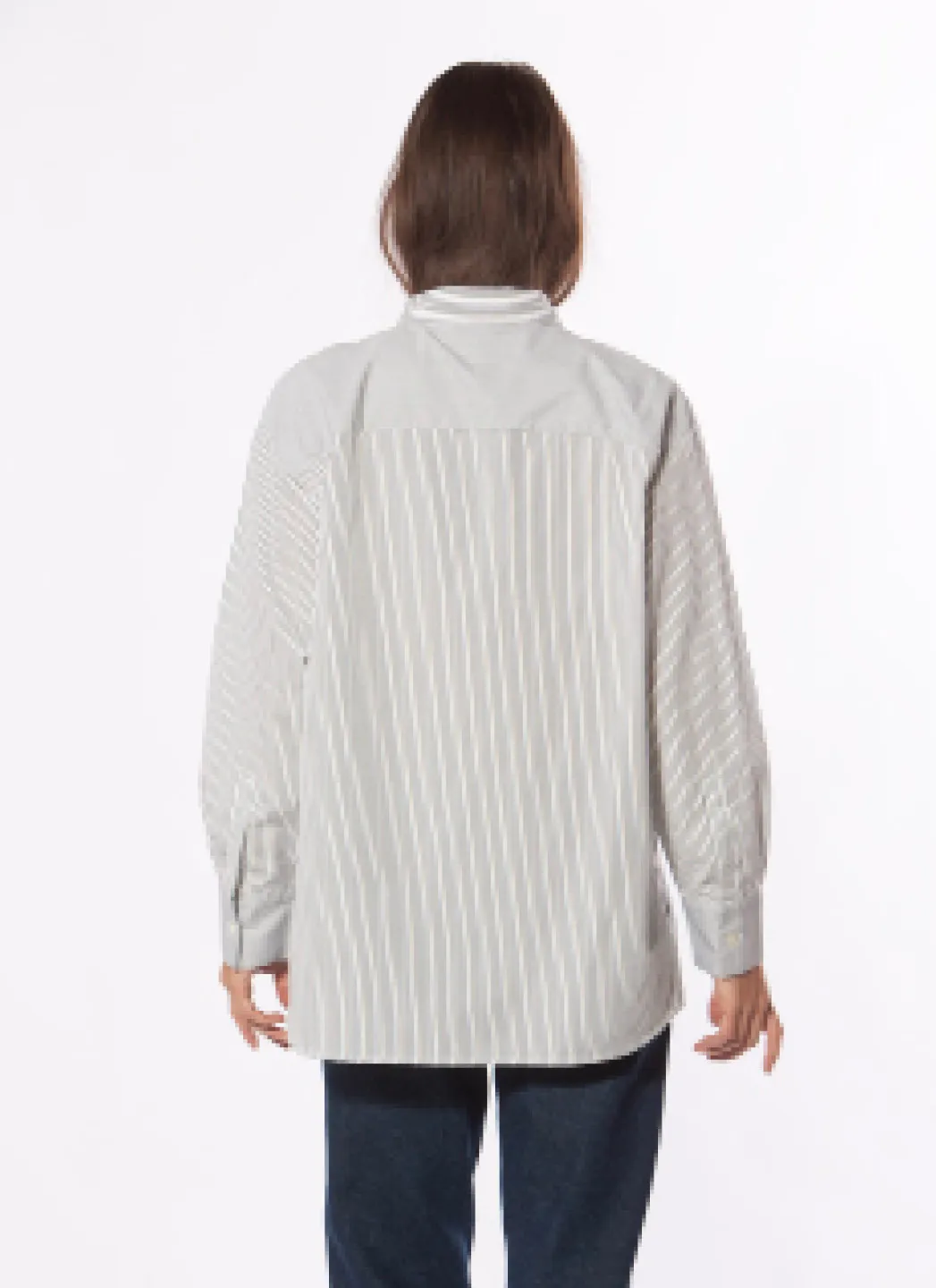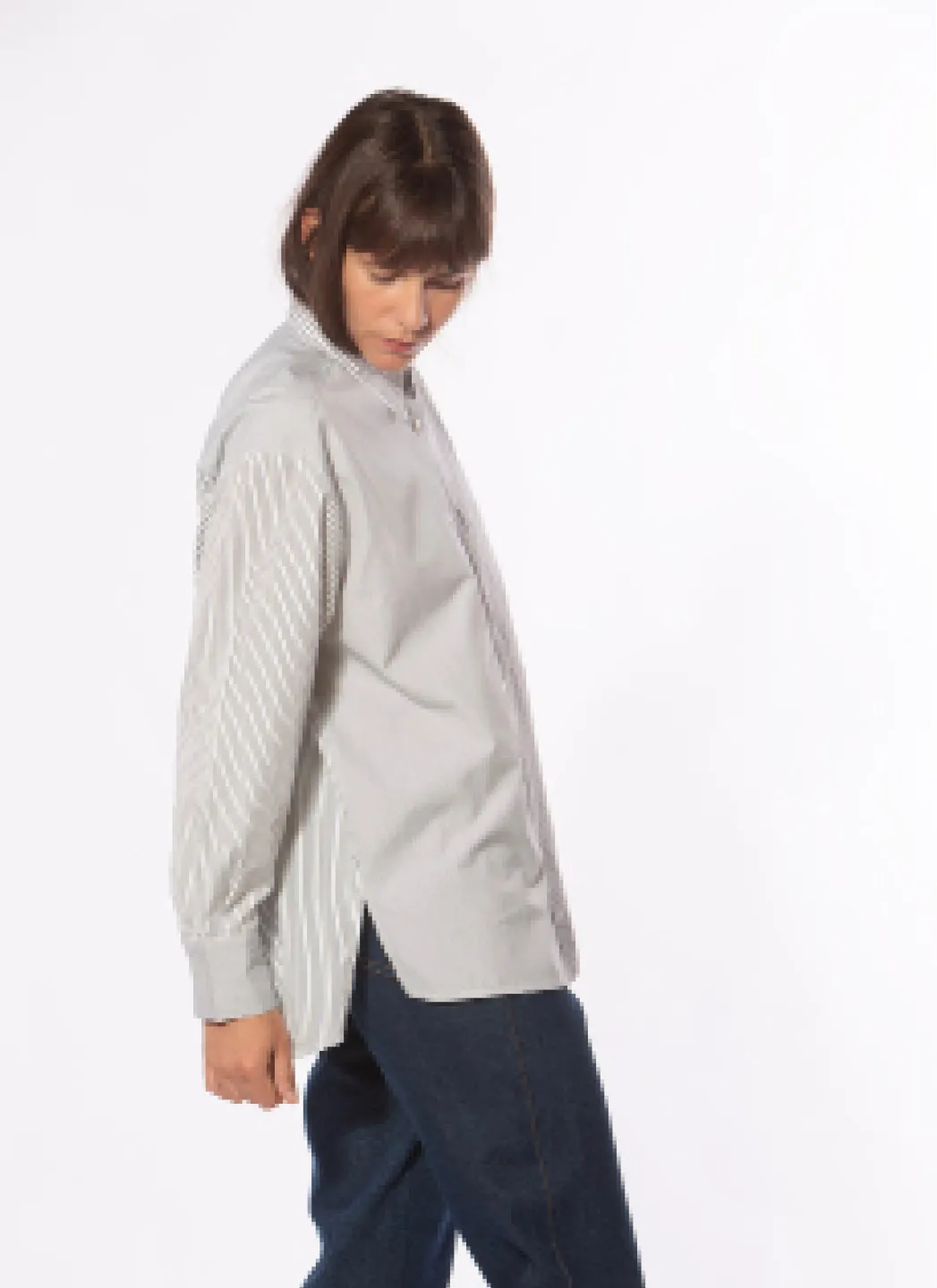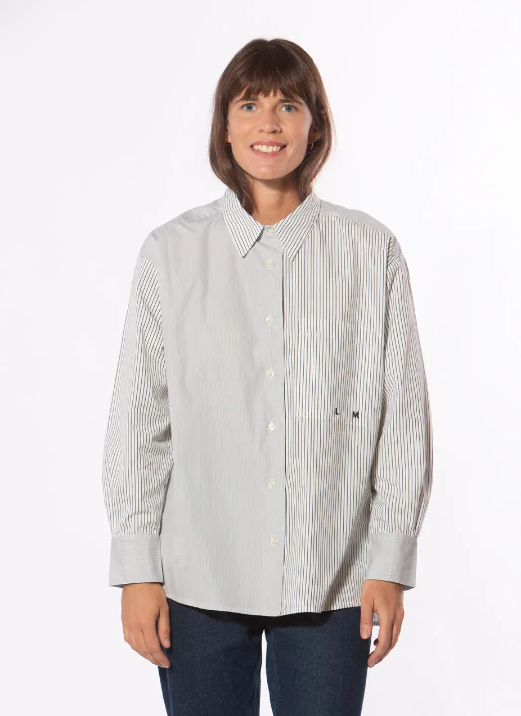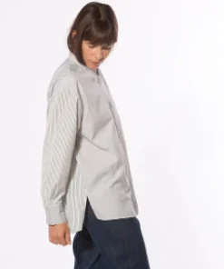 Chemise en popeline de coton à coupe décontractée en construction patchwork. Dos allongé et grande poche poitrine avec broderie du logo.