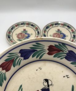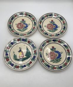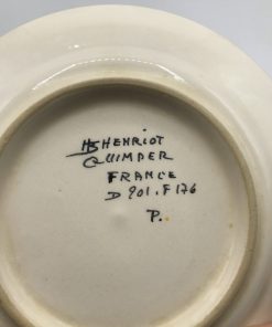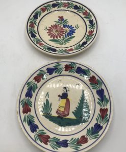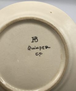 Alerte pépite !!! Pour les amateurs de Quimper et de sa faïence signé HB, ce lot est pour vous. Il est composé de 3 assiettes avec le modèle florale au centre, et une assiette avec une femme aux habits traditionnels, signée est numérotée D 201. F176. De vrai bijoux signé HB, les assiettes ont traversé le temps, elles portent donc quelques traces de celui ci (cf photo). De belles pièces pour commencer, ou compléter une collection. A vous de jouer.