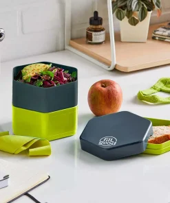 La bento végétale est une solution pratique et responsable pour le transport des repas quotidiens. Fabriquée en France à partir de fibre végétale issue de la canne à sucre, elle est sans OGM, sans mélamine et entièrement recyclable. Compacte, elle présente une contance totale de 1 L, répartie en deux compartiments de 500 ml, idéale pour organiser un repas complet. Le contenu supérieur permet d’ajouter un petit encas ou une portion de pain.