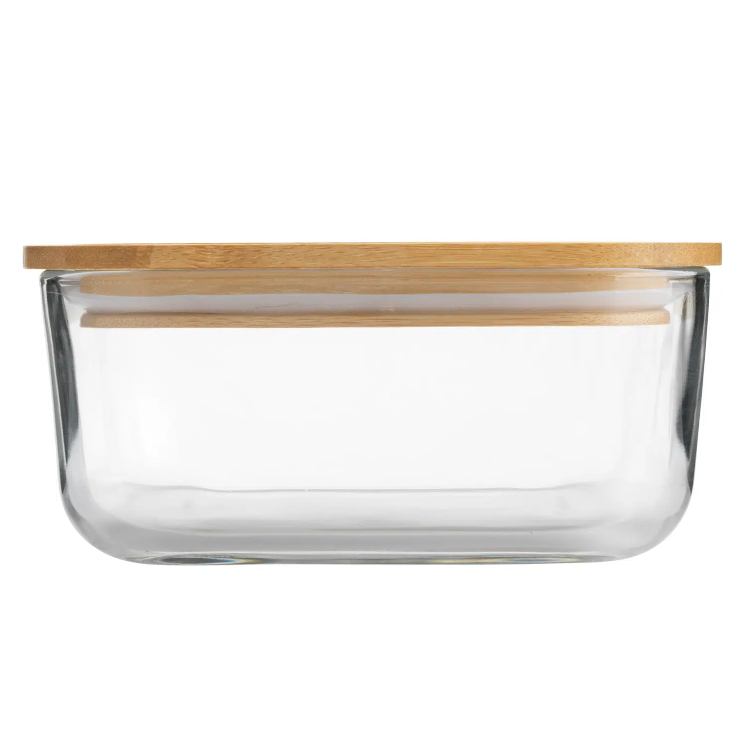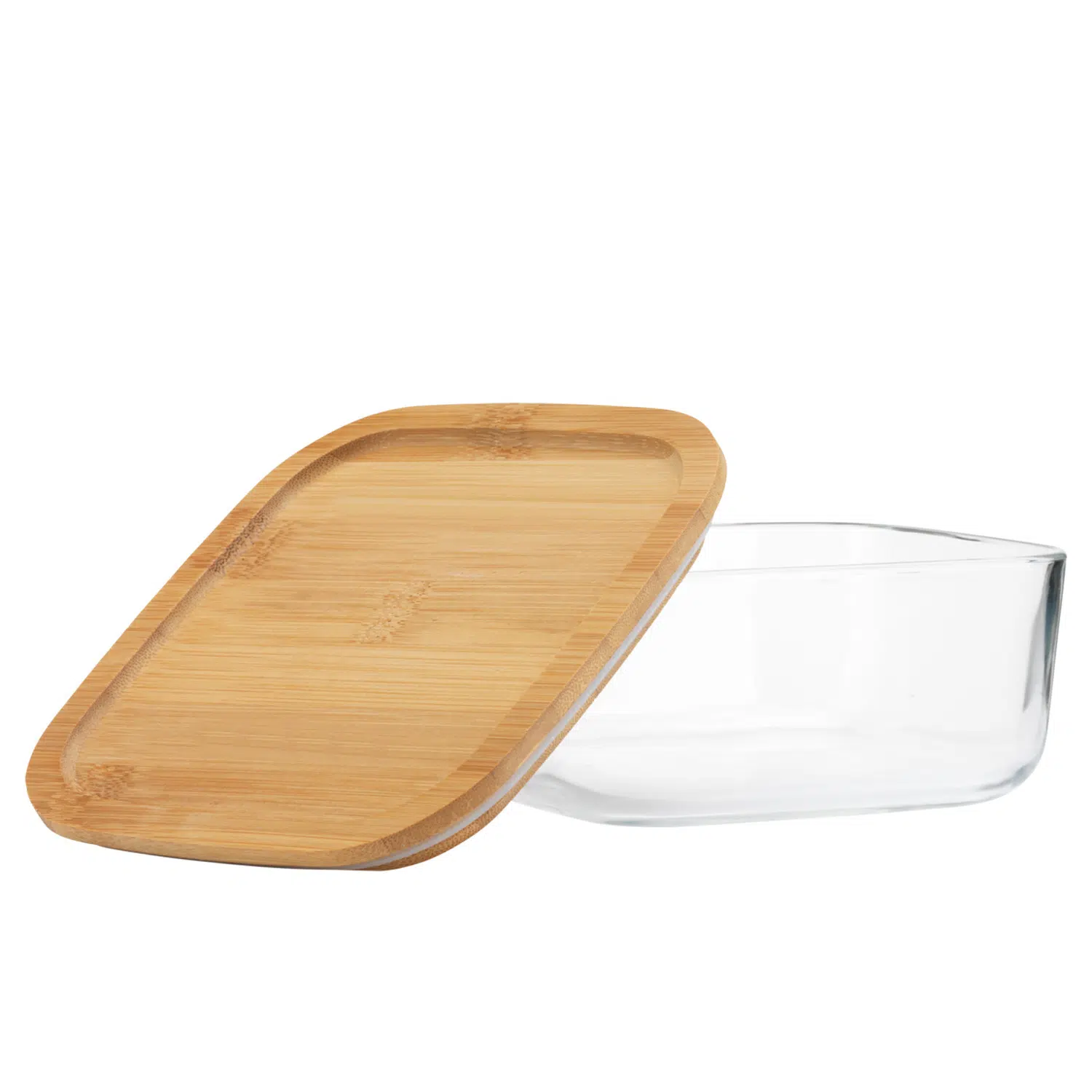 Lunchbox en verre de 1 000 ml avec couvercle en bambou et joint en silicone. Gravure laser personnalisée disponible sur le couvercle.