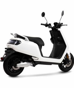 Le LVNENG S5 est le scooter électrique équivalent 50 cm3 situé dans le haut de la gamme de ce constructeur. Il présente un gabarit moyen et permet de réaliser des trajets à deux. Sa vitesse maximale est de 45 km/h. De série, il peut être équipé d’une ou deux batteries amovibles. Il est accessible sans permis si vous êtes nés avant le 1er janvier 1988. Né à partir de cette date, le permis AM vous sera nécessaire.