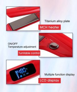 Son affichage LCD vous permet de contrôler la température avec précision, tandis que la technologie MCH assure un chauffage rapide et uniforme, atteignant jusqu’à 250°C/480°F pour des résultats professionnels. Avec une tension universelle de 110-240V et un cordon d’alimentation pivotant à 360 degrés, ce lisseur est pratique et polyvalent, adapté à une utilisation partout dans le monde.