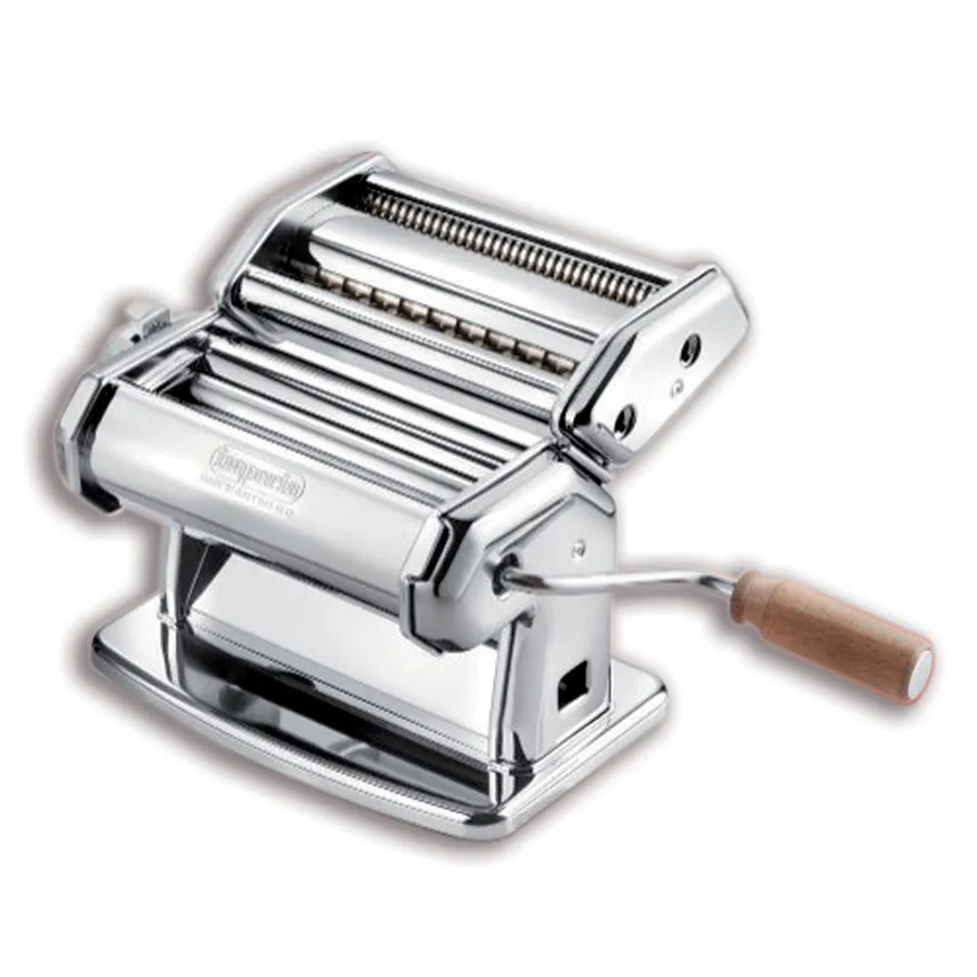 Réalisez des délicieuses pâtes maison avec cette machine à pâtes manuelle robuste en acier chromé. Accessoires fournis : tagliatelle 2 mm et fetuccine 6,5 mm.