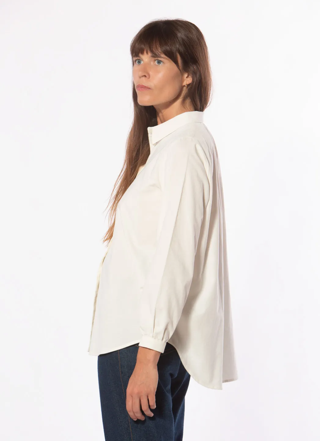 La chemise Géraldine est notre best-seller de longue date et fait le lien entre un haut plus habillé et l’élégance décontractée d’une chemise. Elle présente des plis au dos et aux poignets pour plus d’élégance, tout en conservant le confort d’une chemise classique.