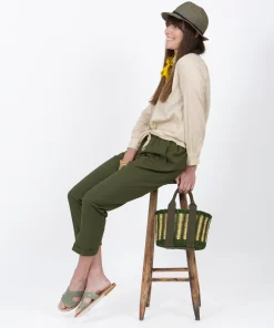 L’ourlet du bas est incurvé et comporte une fermeture qui se superpose à l’ourlet pour plus de confort lorsqu’il est rentré dans le pantalon. Il peut être également utilisé pour faire un nœud à la taille pour un côté vacances.
