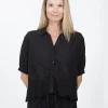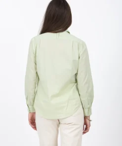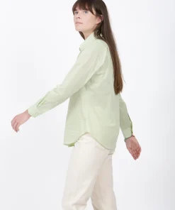 L’ourlet du bas est incurvé et comporte une fermeture qui se superpose à l’ourlet pour plus de confort lorsqu’il est rentré dans le pantalon. Il peut être également utilisé pour faire un nœud à la taille pour un côté vacances.