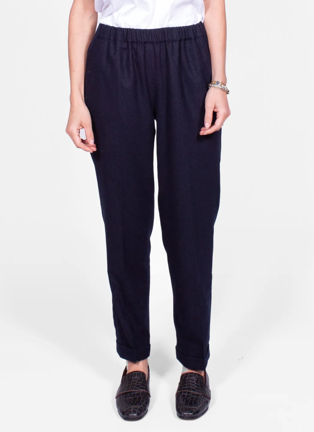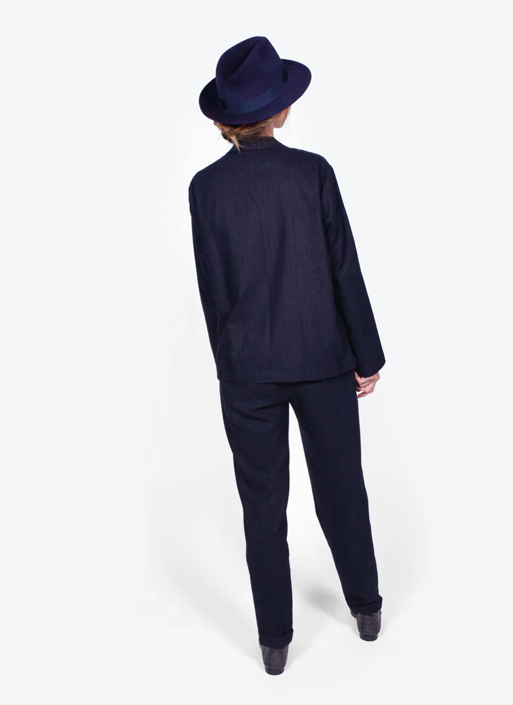 Le pantalon Alberto est l’un de nos coups de coeur au Magasin Central. Sa silhouette classique légèrement effilée se situe quelque part entre costume et chino, mais avec un confort indéniable grâce à sa ceinture élastique. Pour cet hiver, nous avons réalisé une version en laine à rayures qui est douce au toucher et apporte un peu de chaleur. Combinez-les avec notre veste Bea pour un costume complet.