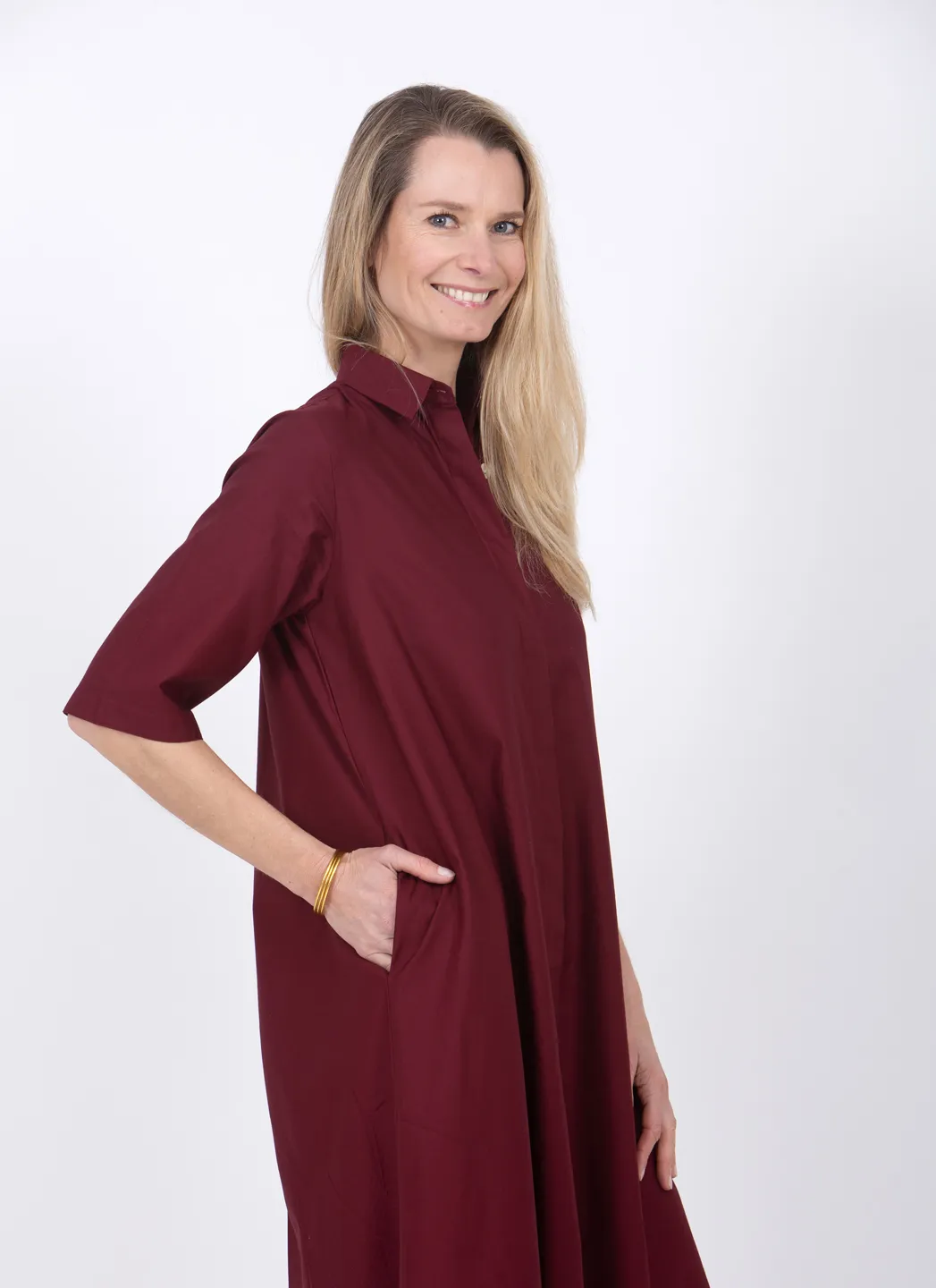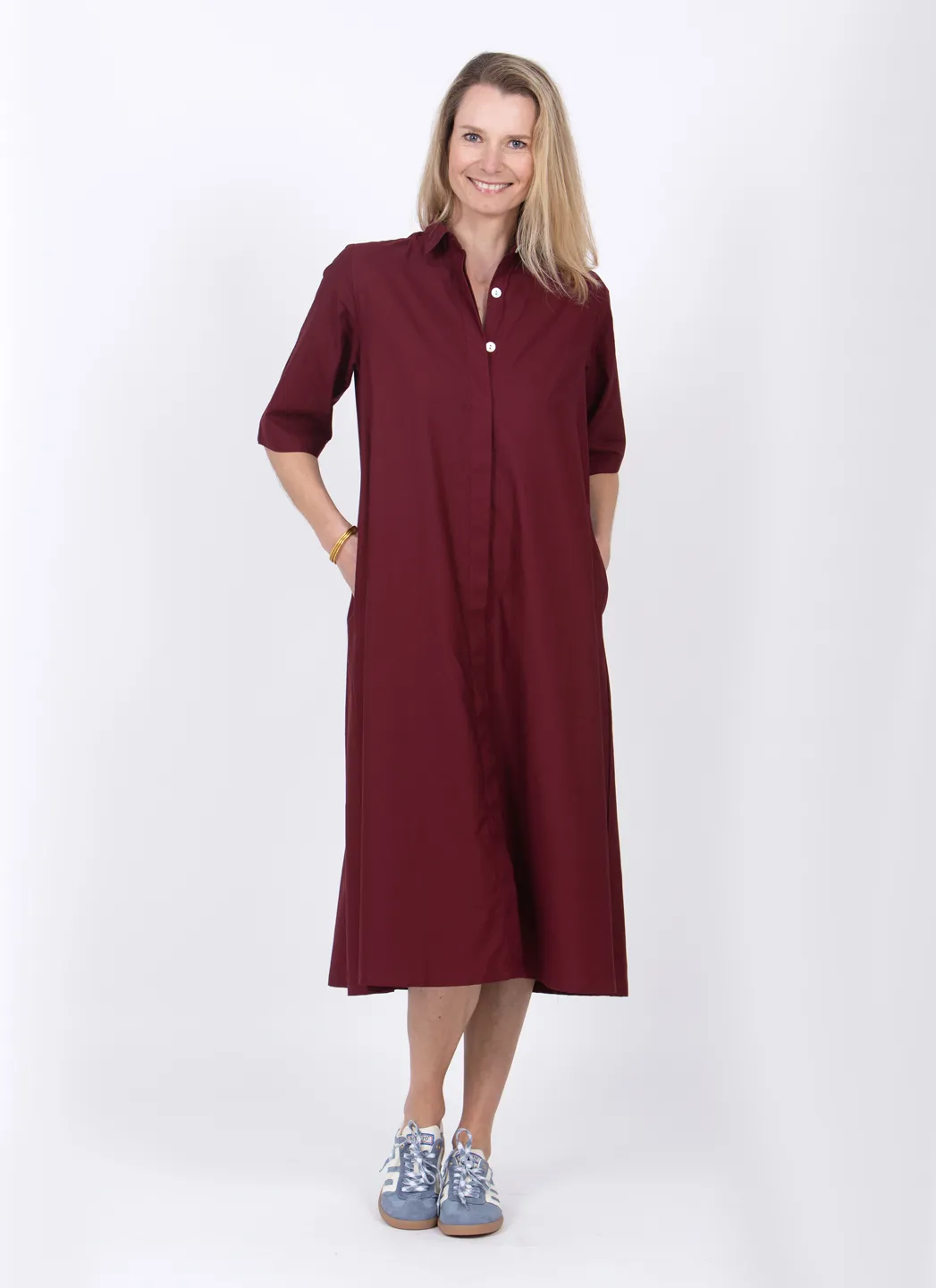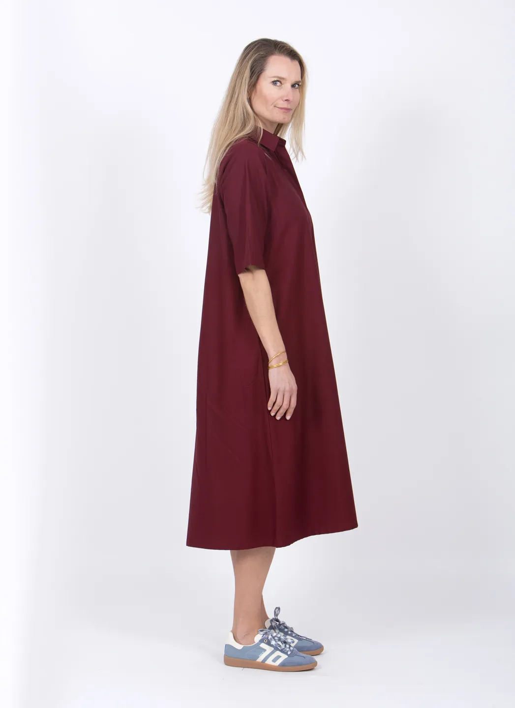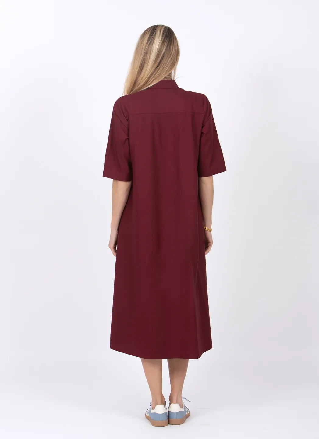 La Boby est notre version de la robe chemise classique. Portez-la au travail, à la plage ou même au restaurant. La coupe est basée sur le drapé naturel du tissu et elle n’est ni oversize ni étroite. Elle est dotée de manches courtes, de poches latérales et d’une fermeture boutonnée cachée sur toute la longueur.