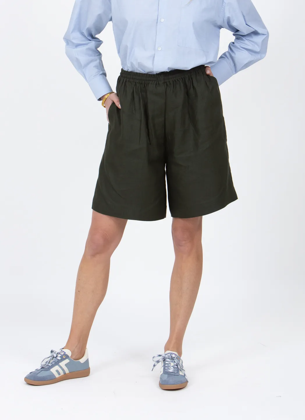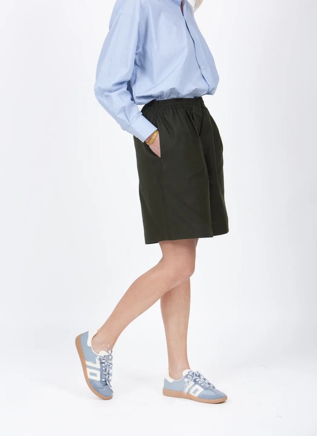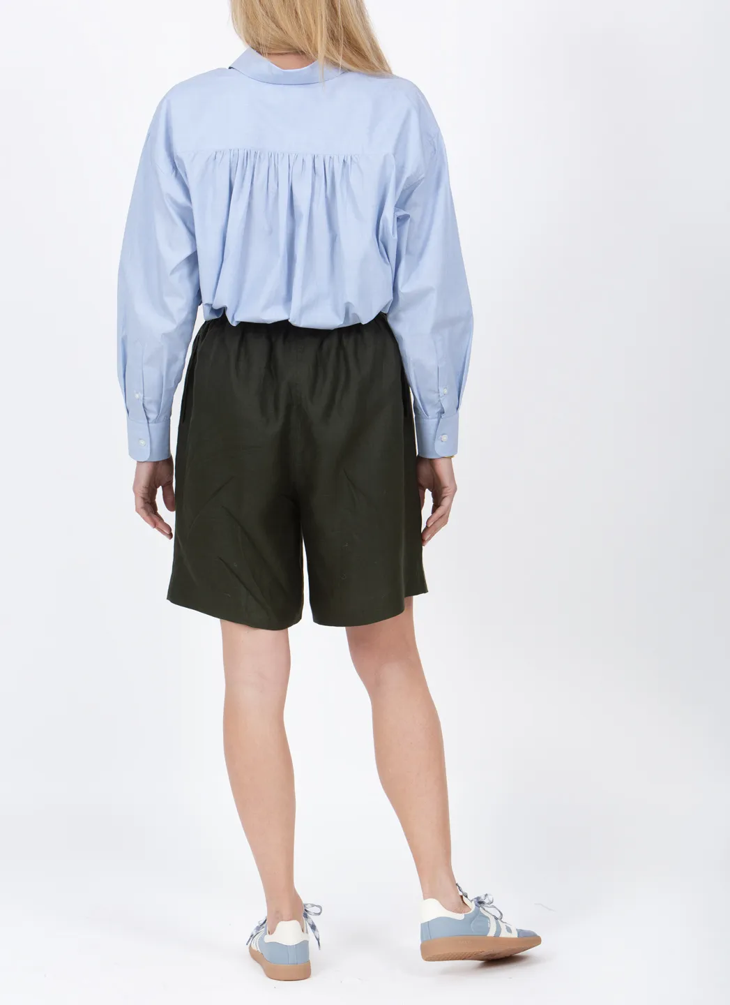 Maggie est un short ample et facile à porter qui s’inspire des vêtements féminins traditionnels britanniques. Doté de plis sur le devant et d’une ceinture élastique, ce short est aussi confortable qu’élégant.