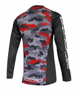 Le maillot cross swaps Camo pour enfant est un vêtement ultra-léger et résistant composé à 100% en polyester. Il offre une coupe technique et ajustée limitant l’entassement de matière afin d’améliorer le confort. Ses panneaux mesh aérés sur les côtés apportent une bonne respirabilité et une excellente aération. Le bas du dos est prolongé pour maintenir le bas du maillot dans le pantalon. Le col et les poignets sont ajustés « stretch » pour plus de confort.