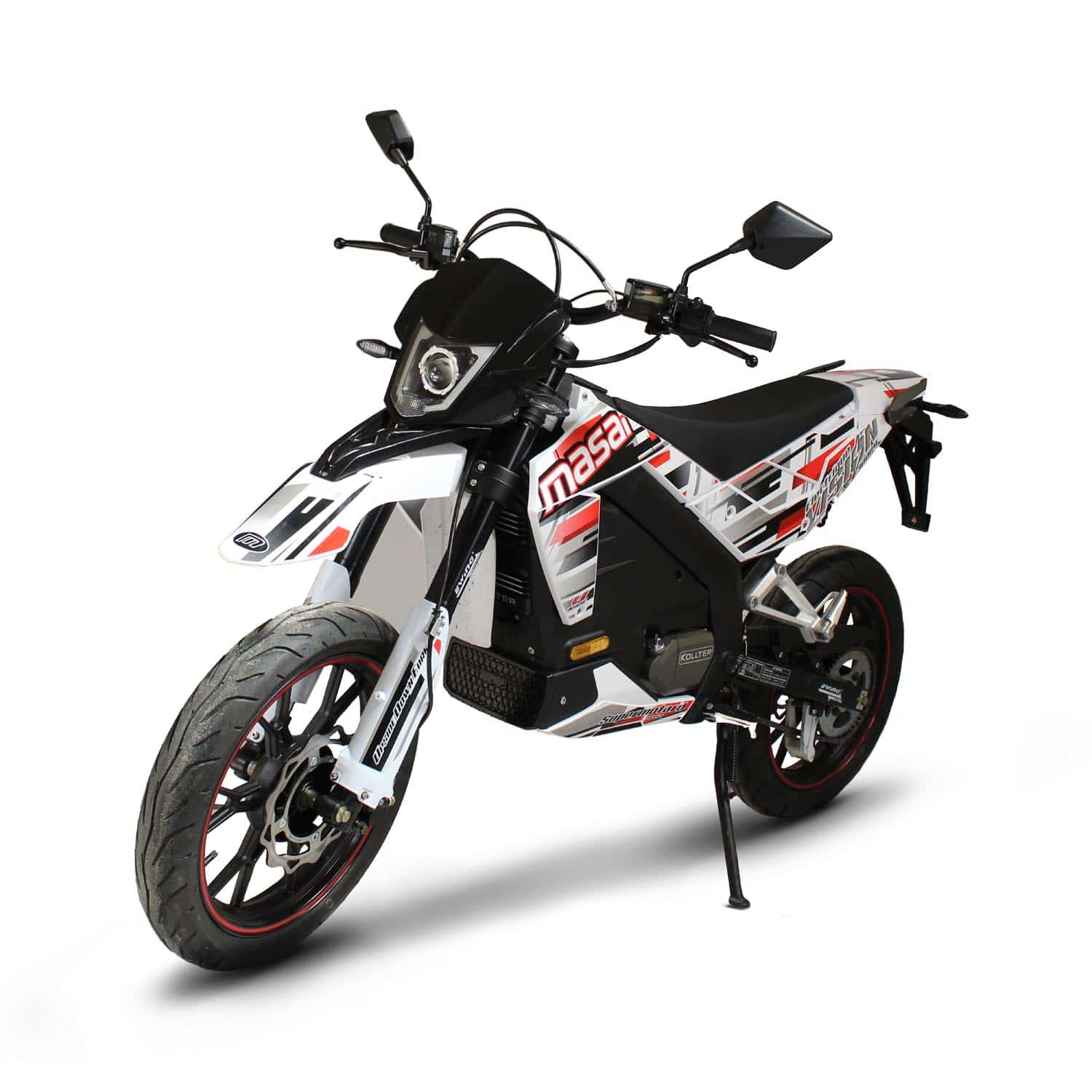La Masai Vision 3000 est un supermotard électrique équivalent 50 cm3. Elle est accessible dès 14 ans avec le permis AM. La moto électrique Masai Vision dispose de lignes sportives issues du monde du motocross et du supermotard.
