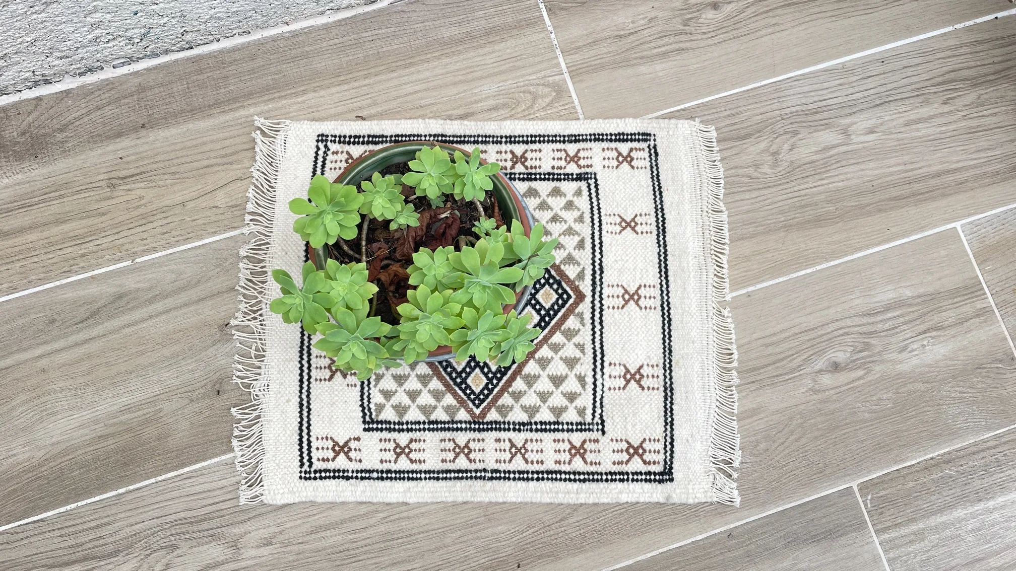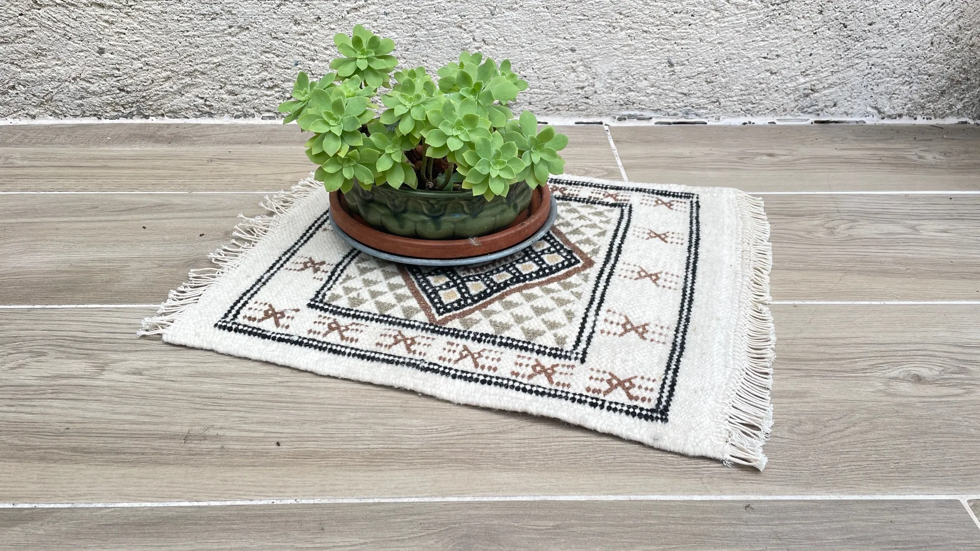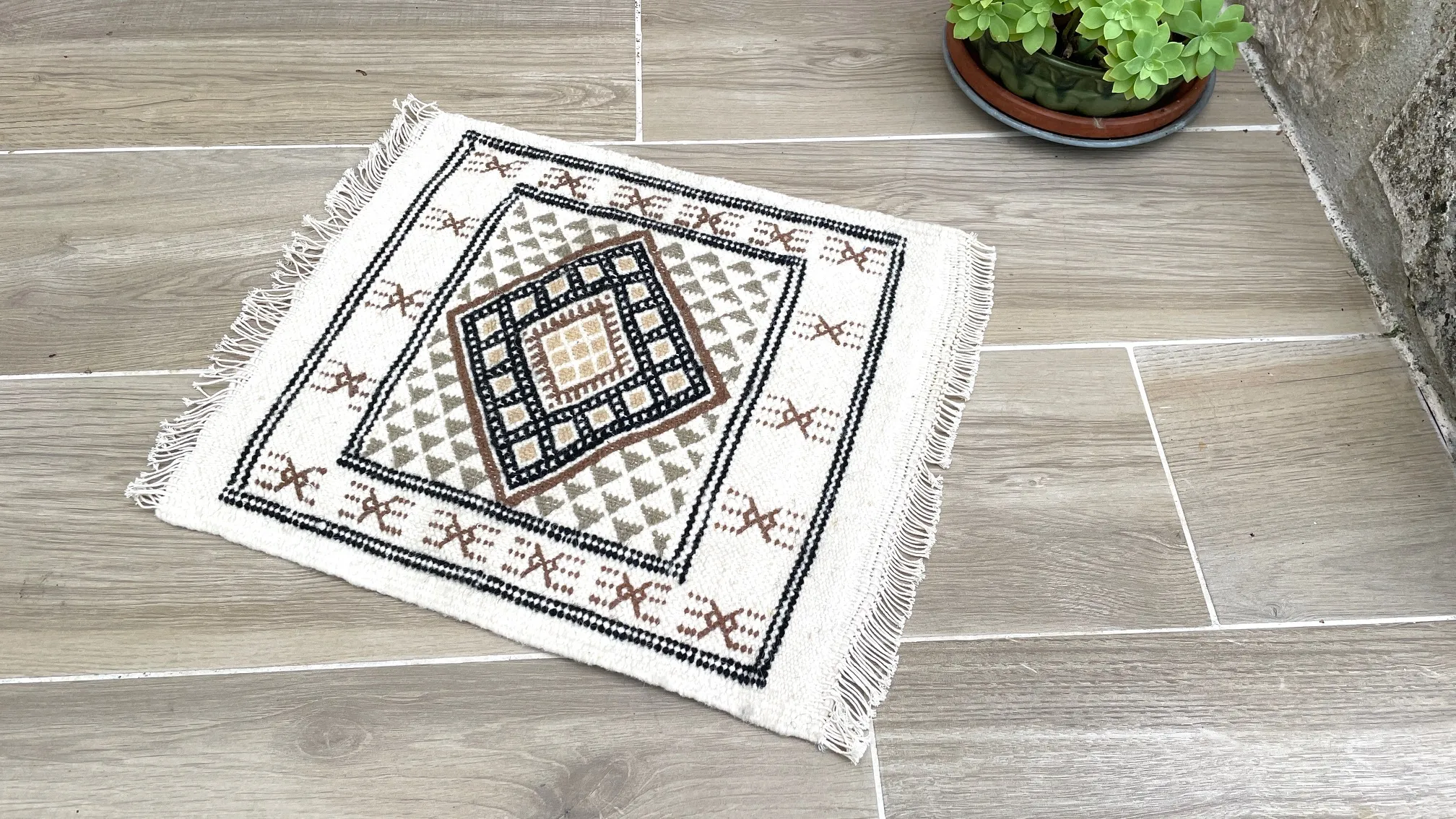 Mini TAPIS Vintage KILIM en Laine – 45cm x 38cm – 40€