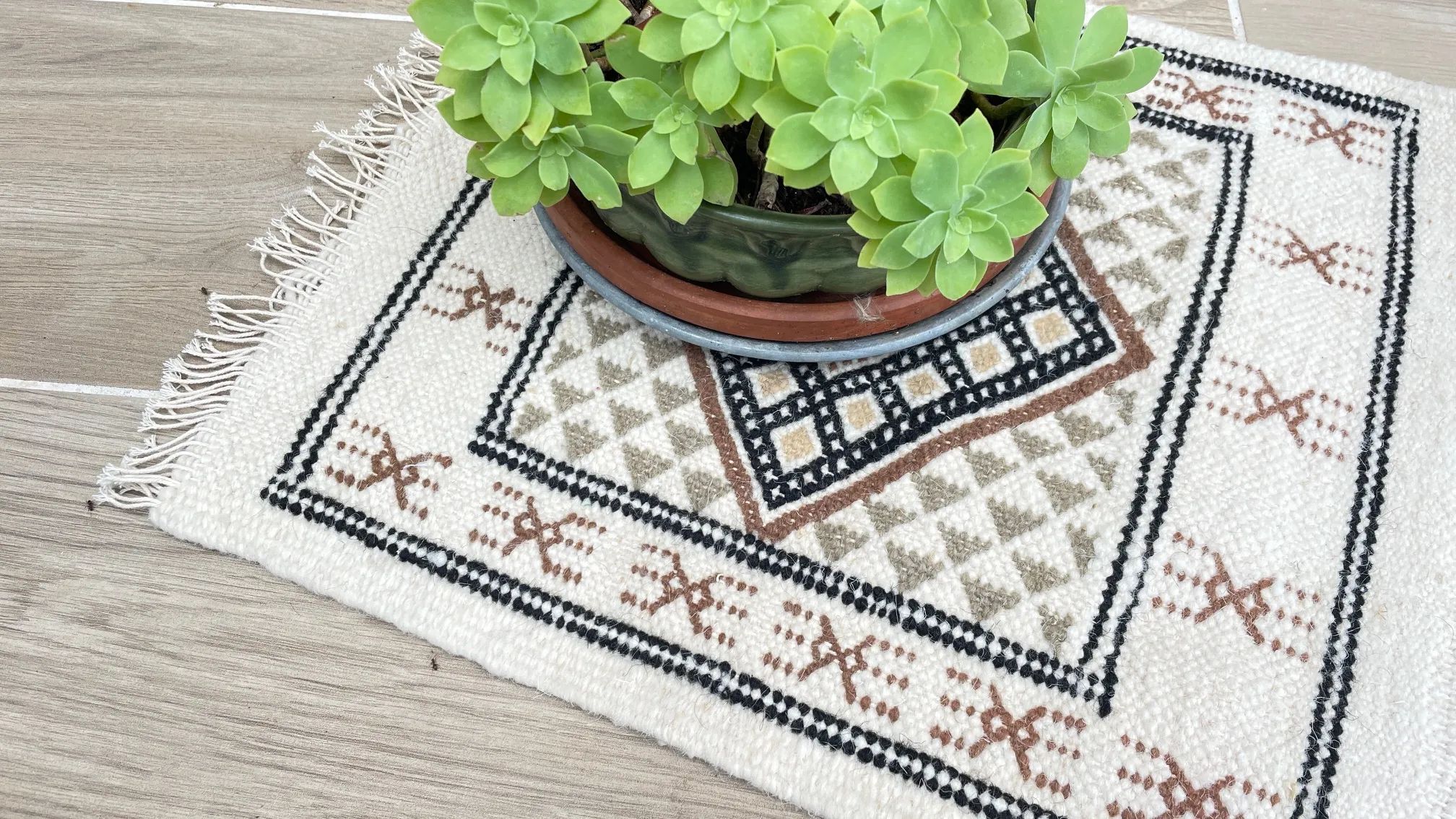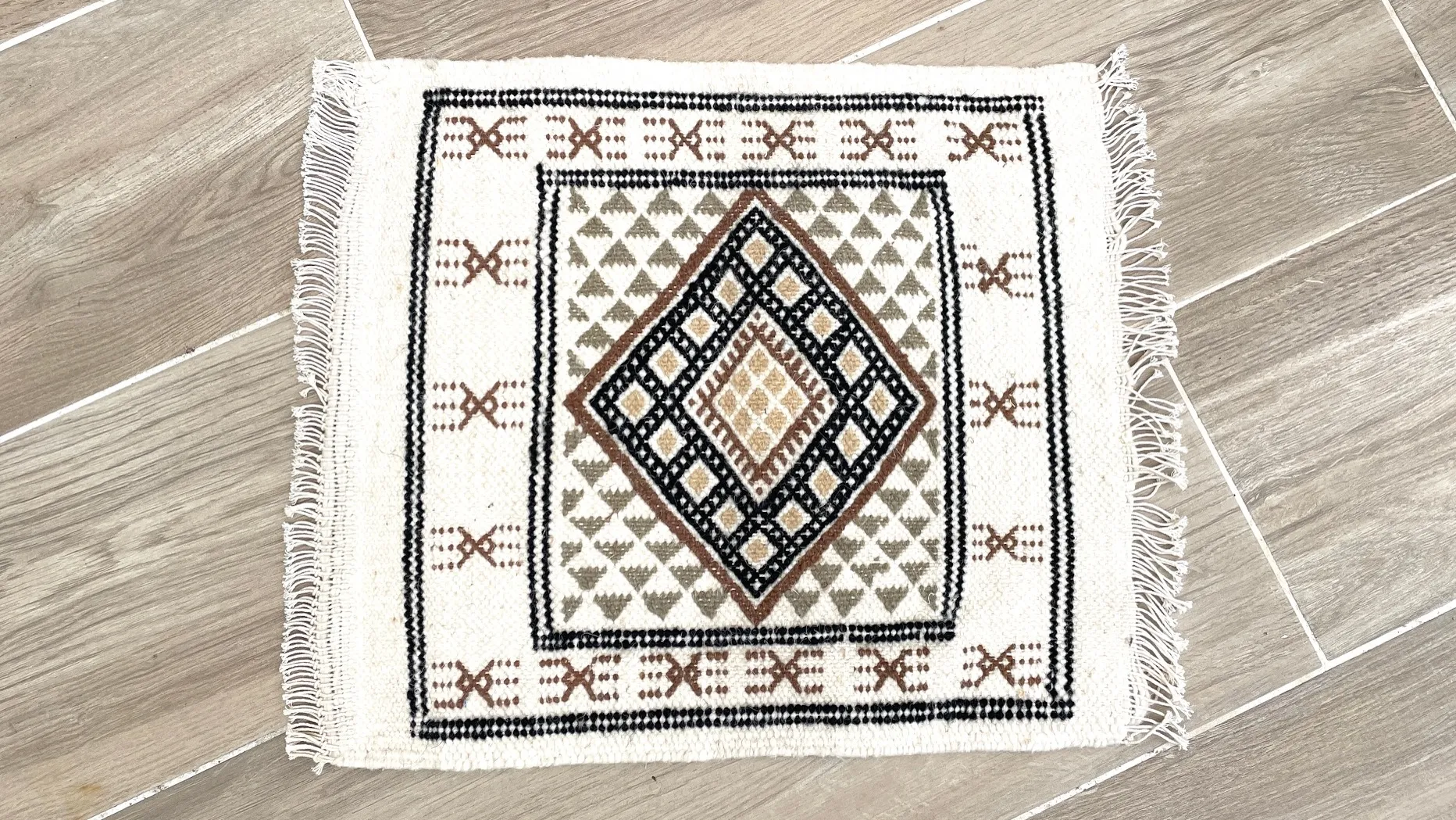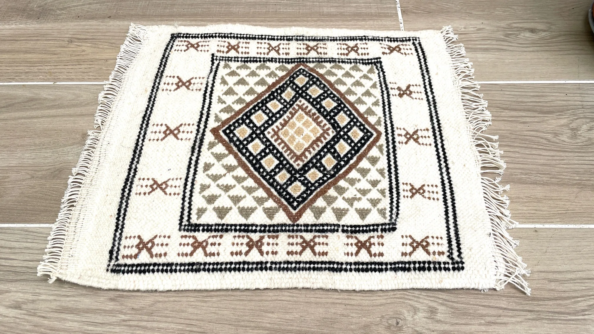 Mini TAPIS Vintage KILIM en Laine – 46cm x 37cm – 40€