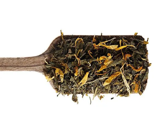 Thé vert fruité à la note de mirabelle, pétales de souci.